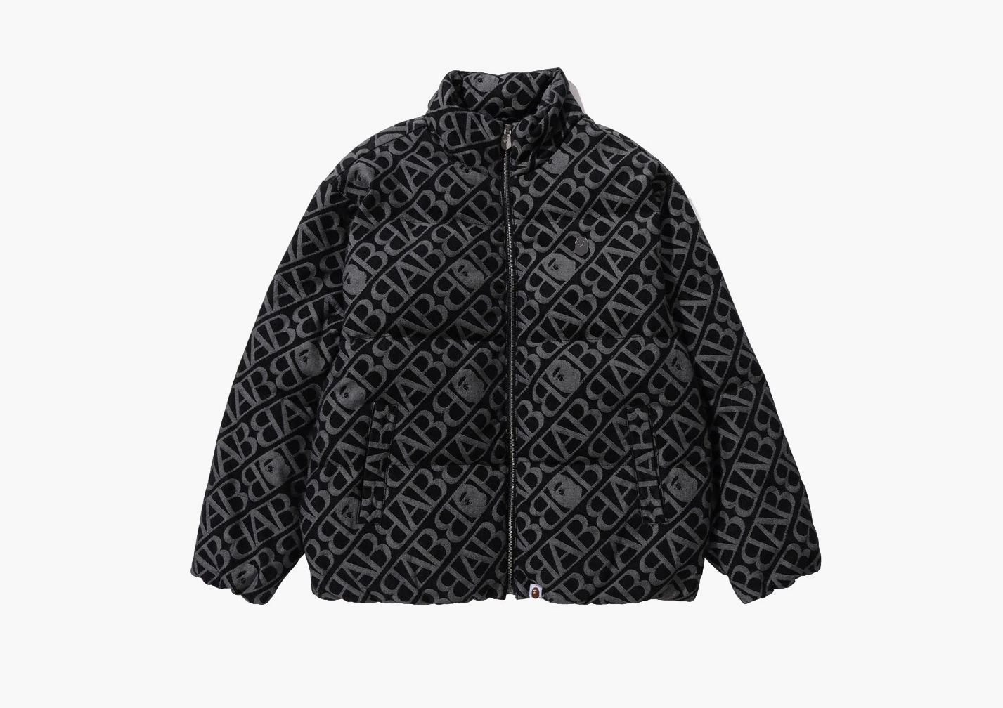 A Bathing Ape Denim Monogram Puffer Down Jacket в классическом чёрном цвете — это настоящая находка для ценителей комфортной верхней одежды с характером.