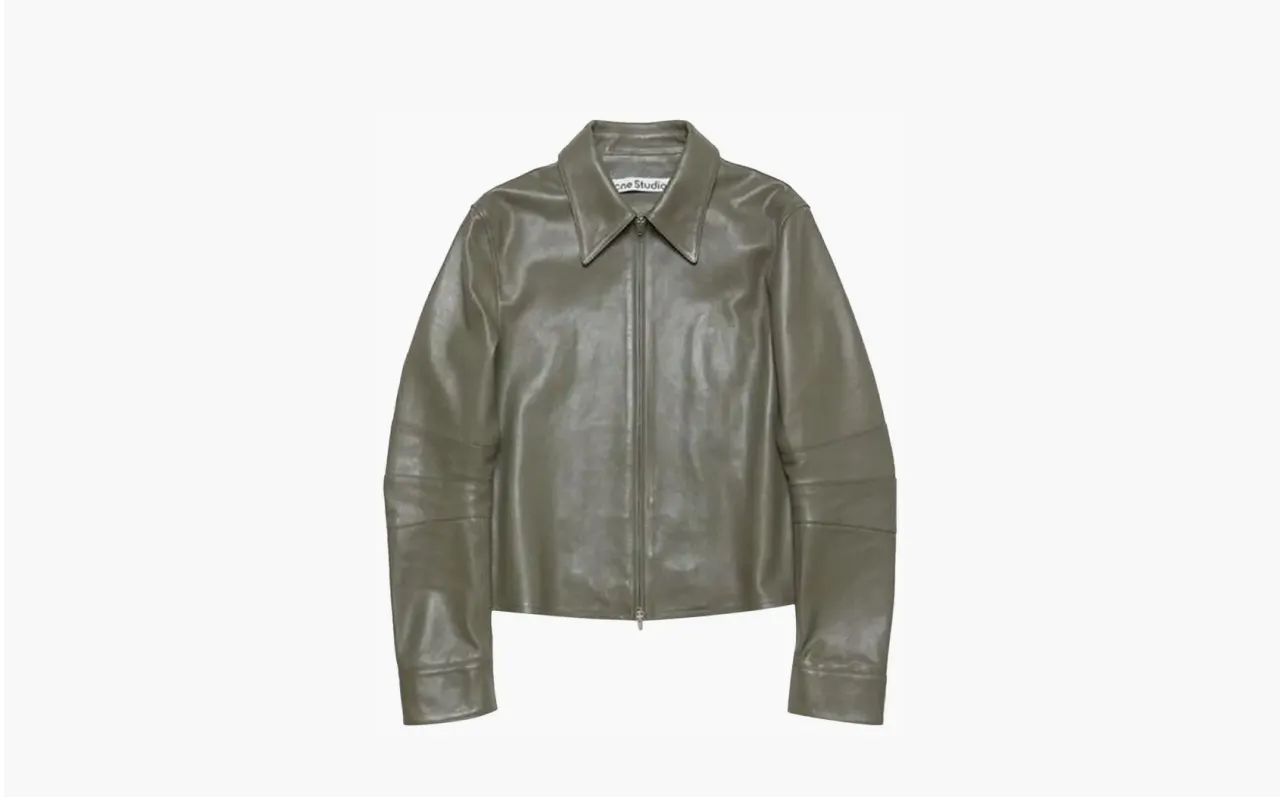 Куртка Acne Studios Leather Jacket в цвете Dusty Green — это приглушенный зелено-серый оттенок, напоминающий мох или оливковую пыль. Сложный, неброский тон придает классической кожаной модели современное звучание, подчеркивая натуральную текстуру кожи и точность кроя.