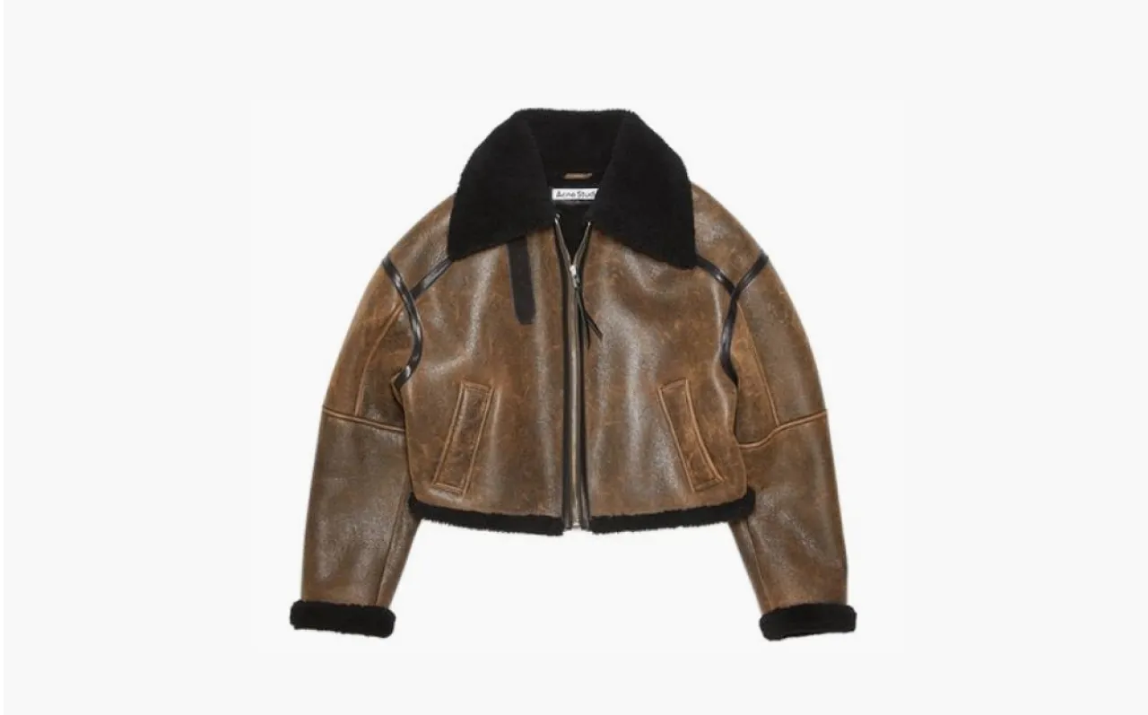 Куртка Acne Studios Leather Shearling Jacket в комбинированной расцветке Dark Brown/Black — это сложный дуэт, где глубокий шоколадно-коричневый сочетается с абсолютным черным. Два базовых оттенка взаимодействуют на разных деталях: например, коричневая кожа на основном фоне и черный шералин на воротнике, манжетах или подкладке.