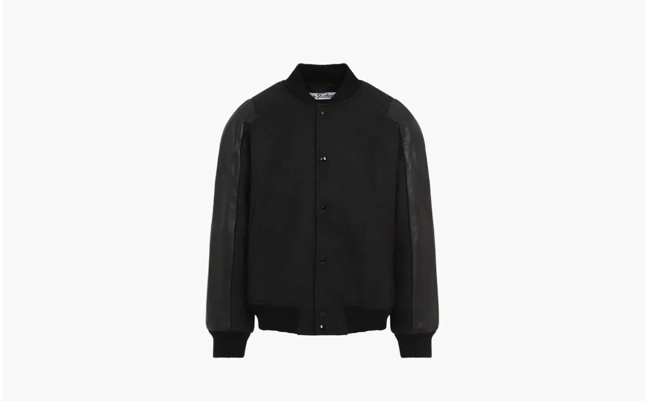Бомбер Acne Studios из шерсти в черном цвете — это элегантный синтез повседневного силуэта и благородного материала. Модель сохраняет узнаваемые черты классического бомбера — укороченный крой, резинки на манжетах и поясе, — но благодаря использованию шерсти приобретает строгость и тактильную глубину.