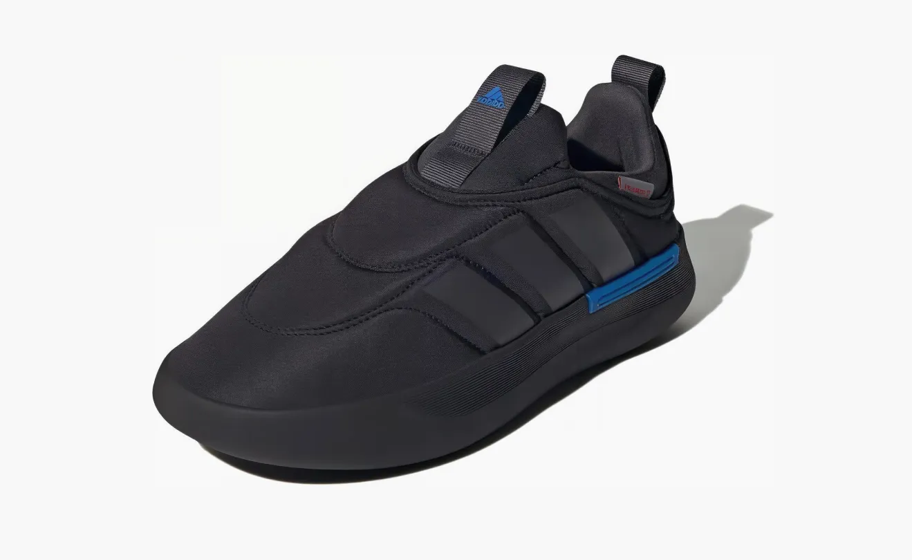 Кроссовки Adidas Adipuff — это модель в цветовом сочетании «black carbon/bright royal», представляющая собой инновационный гибрид пуховика и обуви. Модель демонстрирует экспериментальный подход бренда к дизайну кроссовок.