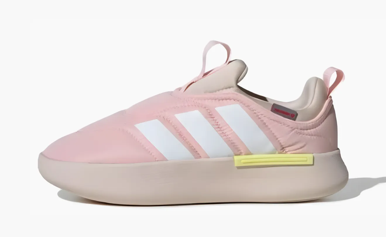 Кроссовки Adidas Adipuff — это розовая модель, представляющая собой концептуальный синтез элементов верхней одежды и обуви. Модель иллюстрирует нетривиальный подход бренда к проектированию кроссовочного силуэта.