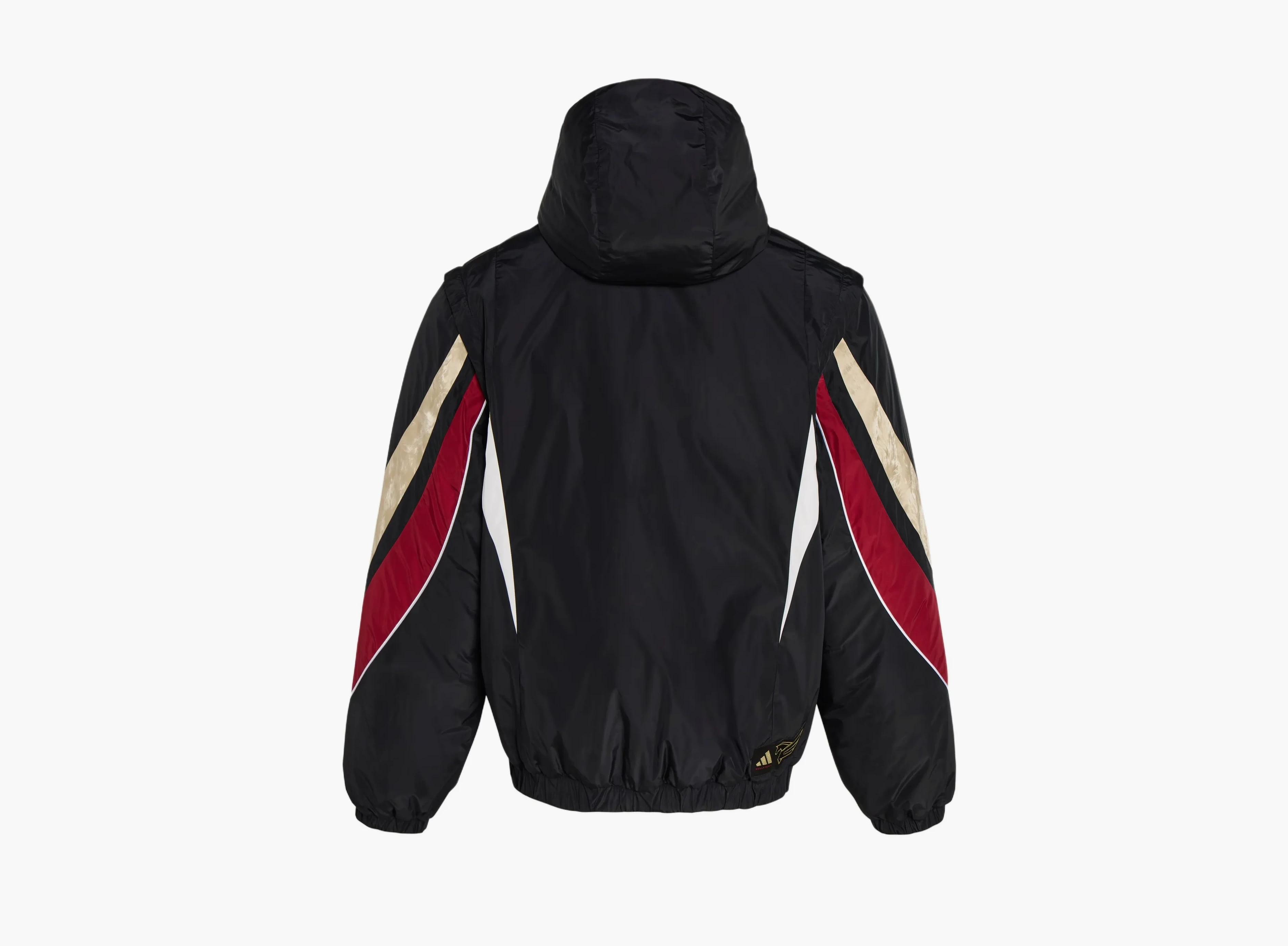 Куртка Adidas Originals Basketball LNY Jacket в классическом черном цвете. Модель выполнена из успешного сочетания легких и износостойких материалов, обеспечивающих комфорт даже при активной носке. Специальный дизайн с фирменными элементами adidas и символикой LNY делает эту куртку частью лимитированной коллекции, посвященной новым стартам и вдохновению. Ключевая особенность — это продуманный крой с аккуратной посадкой и минималистичным стилем, который не мешает свободному движению. Технология легкой теплоизоляции, встроенная в материал, позволяет сохранять тепло без лишней тяжести, а использование высококачественных тканей гарантирует долговечность изделия. Стильные детали, такие как контрастные вставки и логотипы, не только украшают внешний вид, но и подчёркивают его спортивный характер. Эта модель отлично подойдет и для прохладных прогулок, и для активного отдыха в городе. Настоящий тренд этого сезона — сочетание спортивной функциональности с уличной безупречностью, и Adidas успешно реализует эти идеи в своем дизайне. Уникальность именно этой куртки — в её актуальности и памяти о значимых спортивных и культурных событиях, что делает ее не просто одеждой, а частью истории современных модных течений.