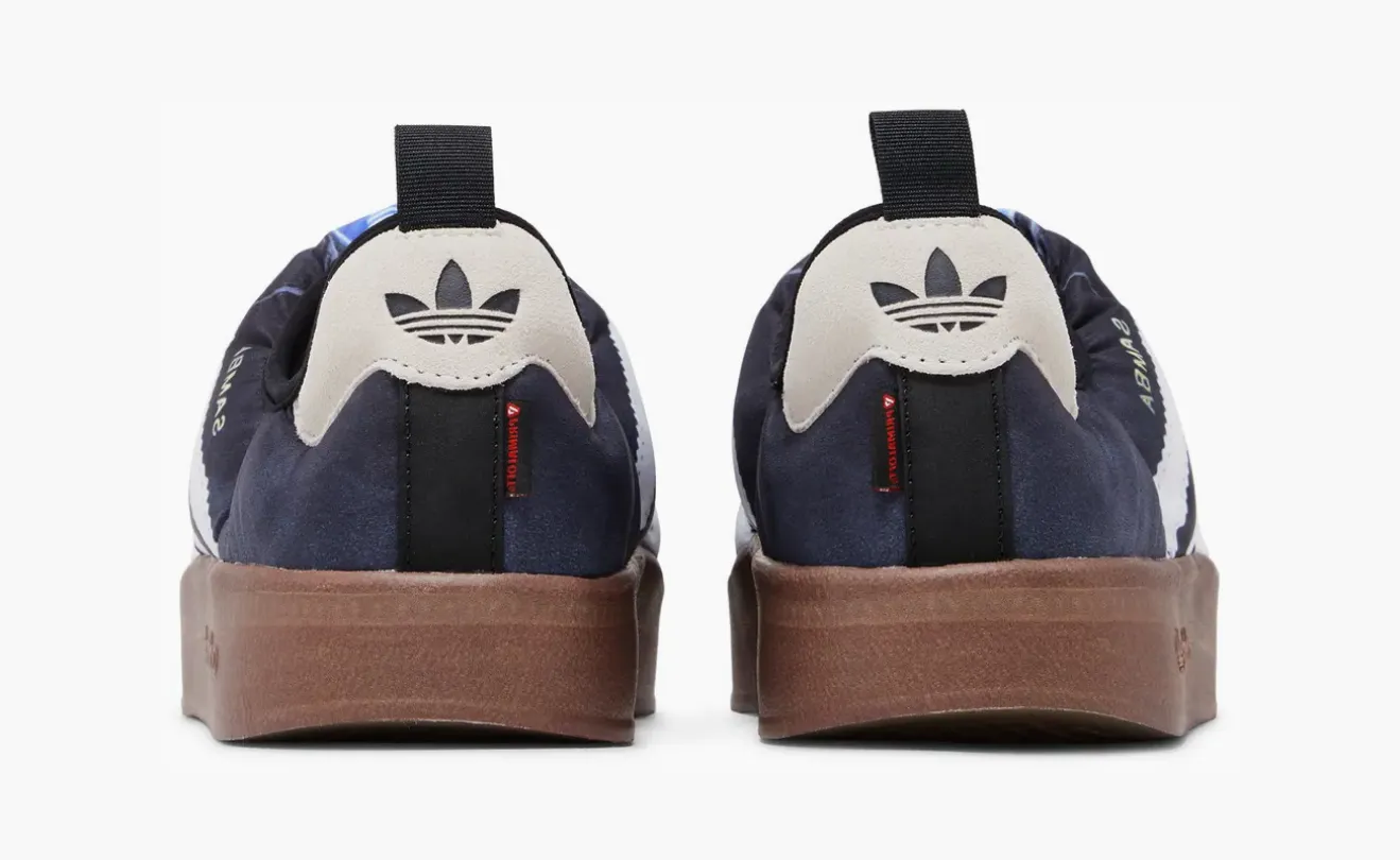 Кроссовки сохраняют характерные черты оригинальной Samba — низкий профиль, знаменитую резиновую подошву с зигзагообразным протектором и контрастные три полоски, но представлены в совершенно новой объемной интерпретации. Верх выполнен из стеганого текстиля, создающего эффект утепленной обуви, а удлиненный язычок и мягкие подкладки добавляют тактильной выразительности.