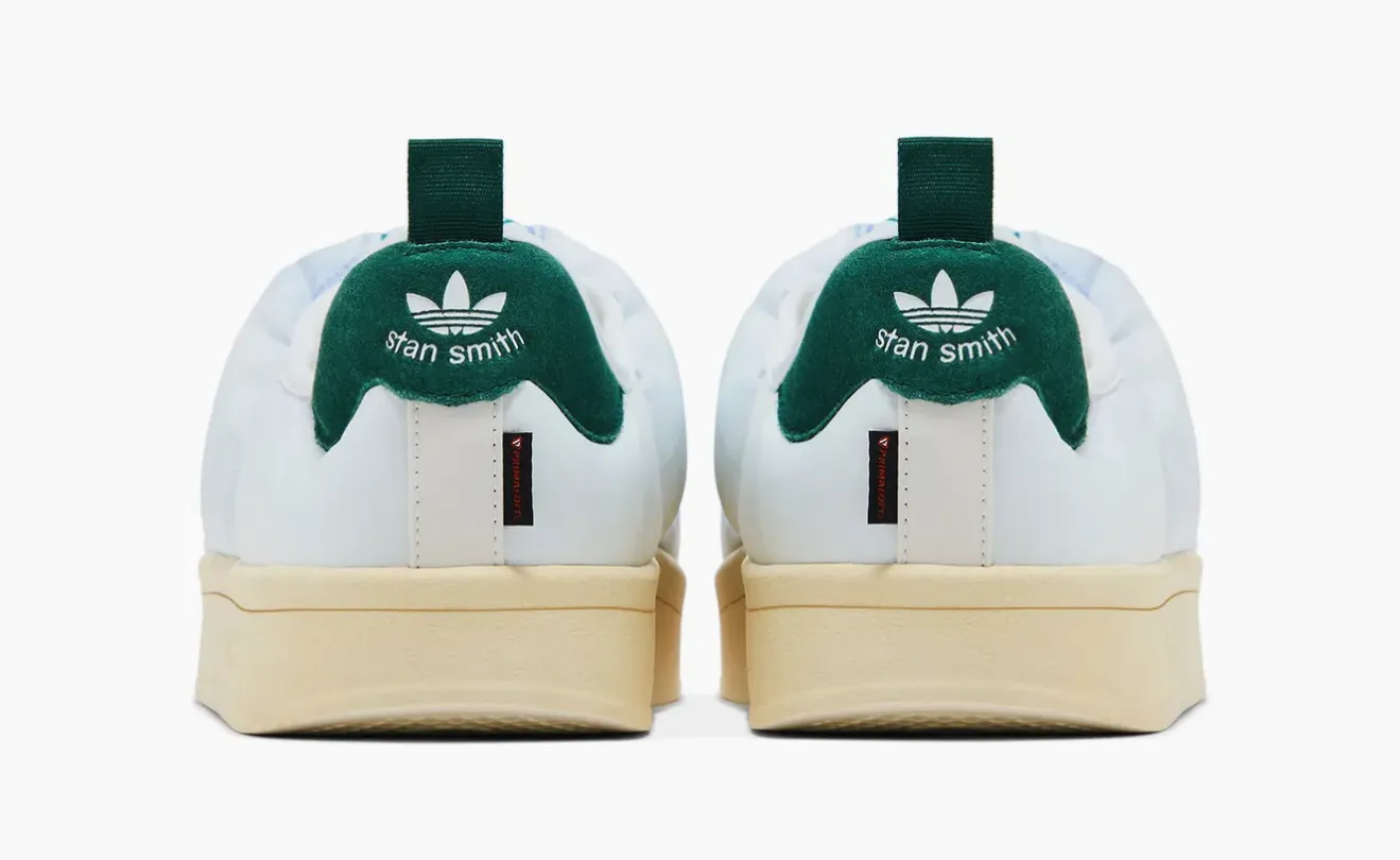 Кроссовки сохраняют чистые линии и минимализм классической Stan Smith, но представлены в новой интерпретации — с рельефной стёганой поверхностью и увеличенными пропорциями. Узнаваемая перфорация на мыске, контрастный зеленый акцент на заднике и минималистичный брендинг сочетаются с мягкой объемной конструкцией, создающей эффект утеплённой обуви. Удлинённый язычок и плотная шнуровка подчёркивают гибридный характер модели.