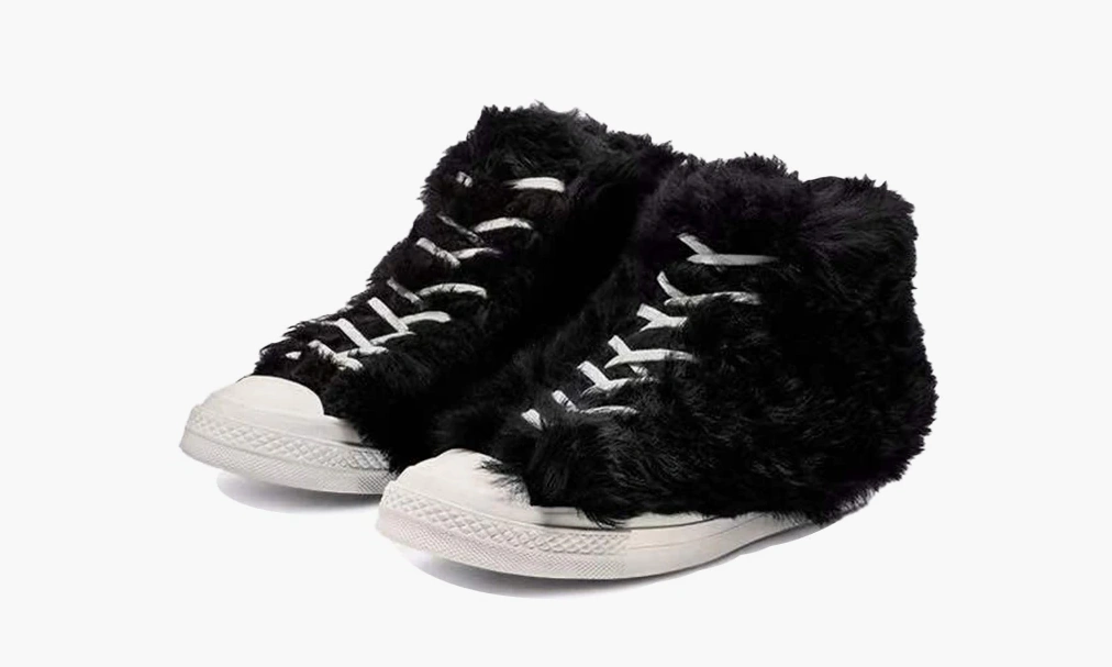Ambush × Converse Chuck 70 High Fuzzy — Black Egret — это не просто кеды, а смелый переосмысление классической модели Chuck 70 в коллаборации с брендом Ambush. Цвет — глубокий, насыщенный чёрный, который легко вписывается в любой гардероб.