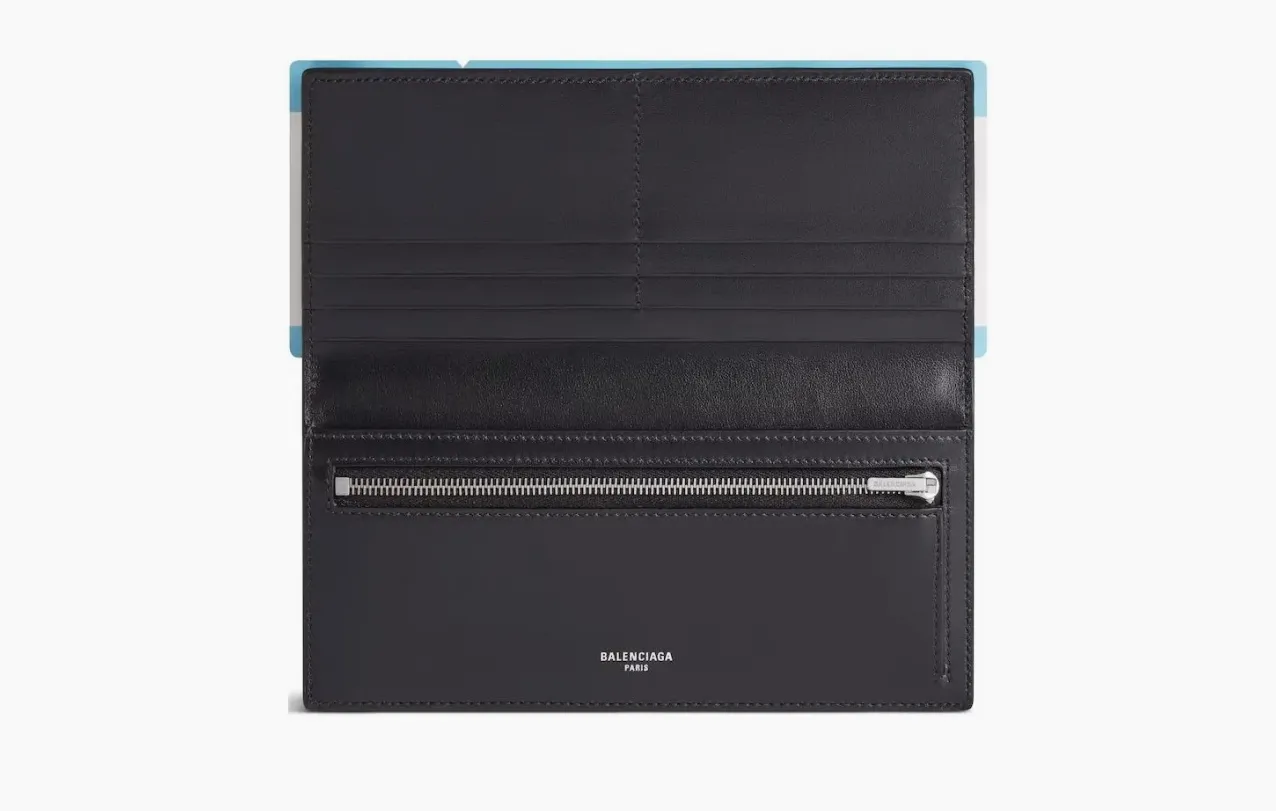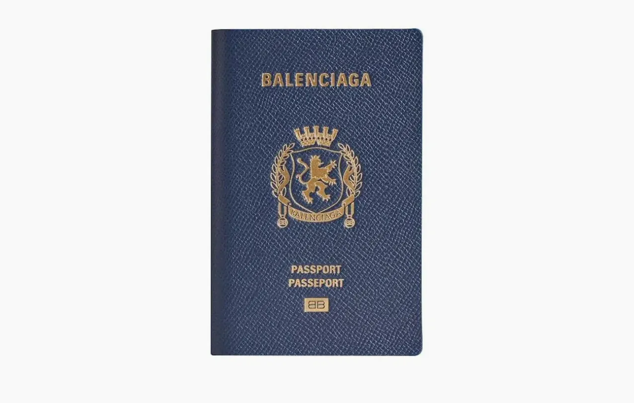 Дизайн обложки лаконичен и сдержан. Логотип Balenciaga выполнен тонким тиснением, что подчёркивает элегантность и универсальность аксессуара. Насыщенный синий цвет добавляет образу яркий, но не кричащий акцент.