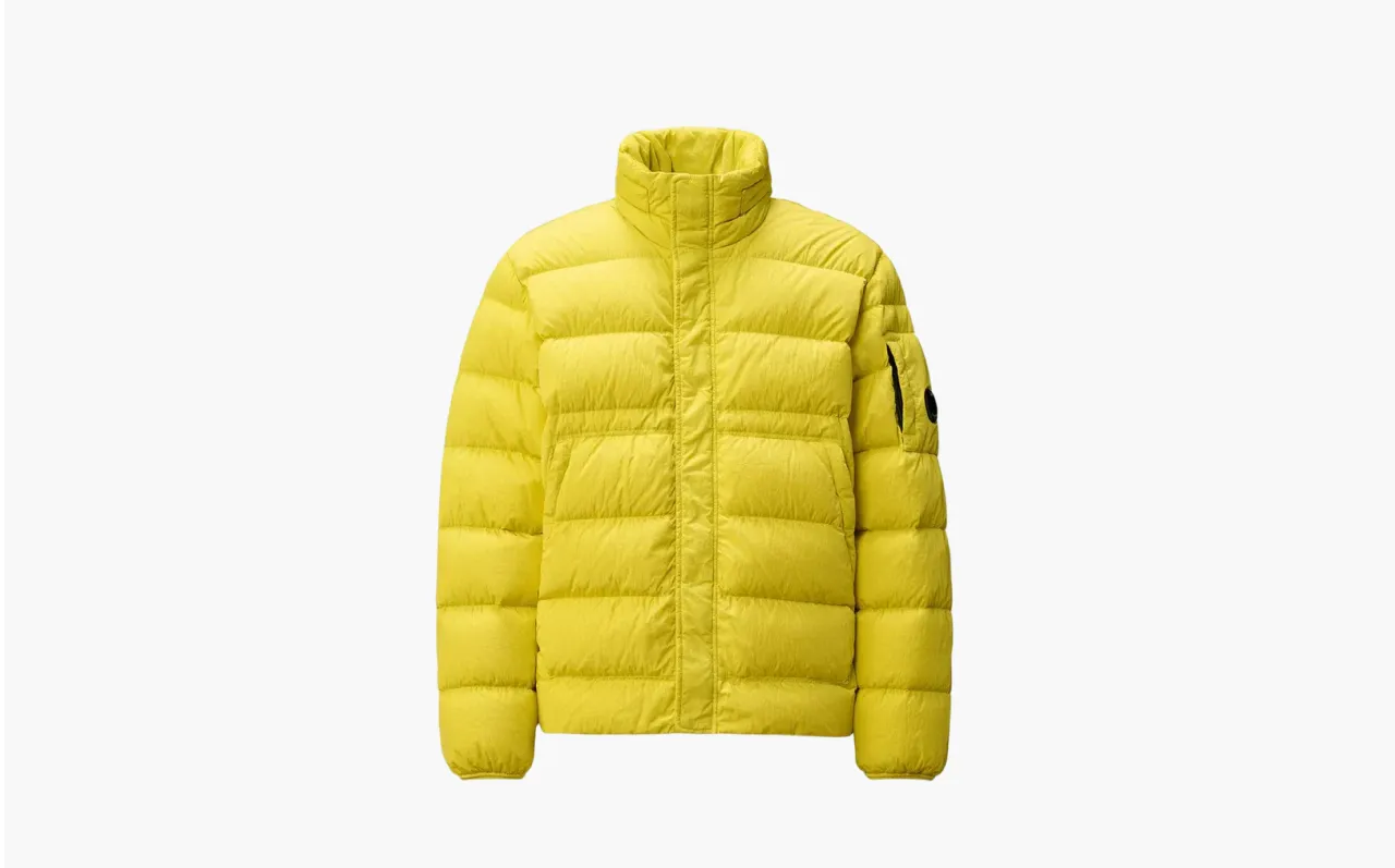Куртка C.P. Company Chrome R-Logo — это жёлтая утеплённая модель с хромированным логотипом и фактурной «смятой» тканью, сочетающая экспериментальные материалы и футуристичный дизайн. Вещь отражает инновационный подход бренда к зимней экипировке.