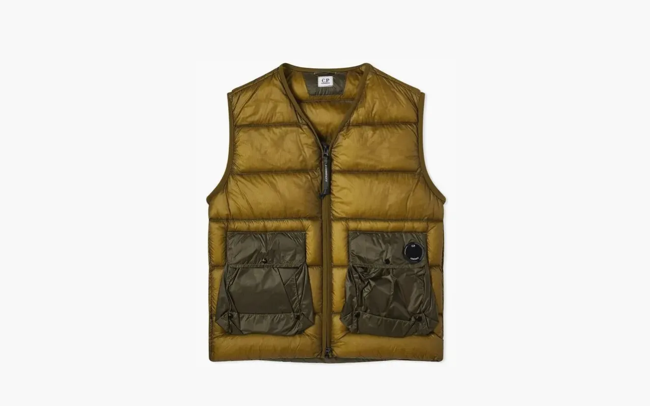 Жилет C.P. Company D.D. Shell — это утеплённая модель цвета «butternut brown» (орехово-коричневый) без рукавов, сочетающая технологичные материалы и функциональный дизайн. Вещь отражает наследие бренда в создании практичной экипировки для городских условий.