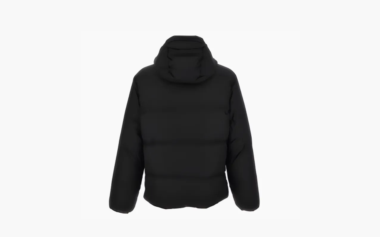 Куртка привлекает внимание лаконичным силуэтом с равномерной стёжкой «в ромб», которая предотвращает смещение наполнителя. Чёрный матовый материал подчёркивает универсальность, а съёмный капюшон с регулируемыми кулисками и высокий воротник обеспечивают защиту от ветра. Детали вроде эластичных манжетов, прорезных карманов и фурнитуры из матового металла подчёркивают утилитарность.
