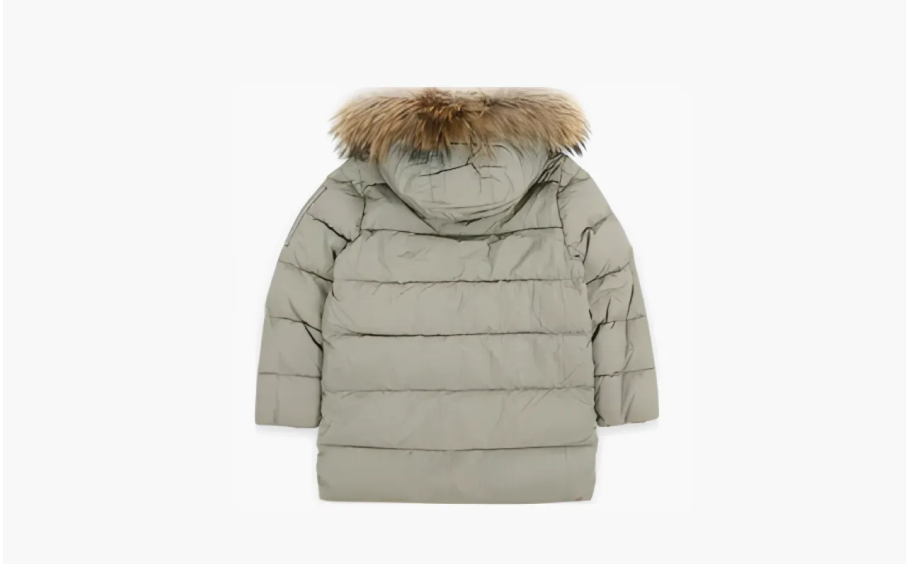 Куртка привлекает внимание лаконичным силуэтом с равномерной стёжкой «в ромб» и мягким серым оттенком, устойчивым к загрязнениям. Съёмный капюшон с регулируемыми кулисками и высокий воротник обеспечивают защиту от ветра, а эластичные манжеты и подол сохраняют тепло. Детали вроде прочных молний, светоотражающих элементов и фурнитуры из антиаллергенного металла подчёркивают безопасность и практичность.