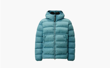 Куртка привлекает внимание лаконичным силуэтом с равномерной стёжкой «в ромб», которая предотвращает смещение наполнителя. Синий оттенок с меланжевым эффектом добавляет глубину материалу, а съёмный капюшон с регулируемыми кулисками и высокий воротник обеспечивают защиту от ветра. Детали вроде эластичных манжетов, прорезных карманов и фурнитуры из матового металла подчёркивают утилитарность.