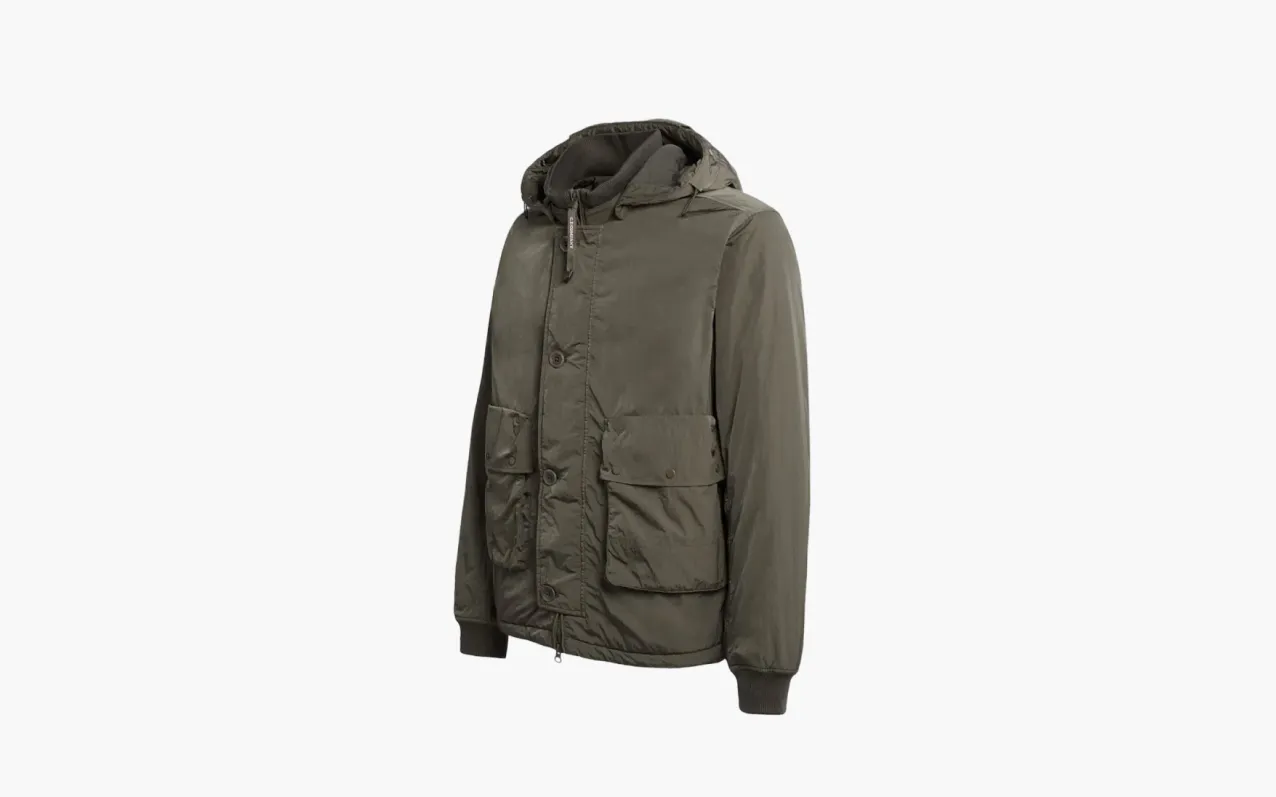 Куртка C.P. Company Chrome R-Goggle — это серая модель с хромированным покрытием и интегрированными гоглами, сочетающая инновационные материалы и футуристичный дизайн. Вещь отражает экспериментальный подход бренда к городской экипировке.