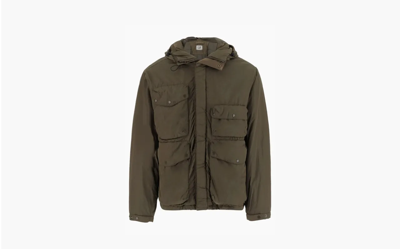 Куртка C.P. Company — это модель зелёного цвета с интегрированными линзами на капюшоне, сочетающая технологичные материалы и экспериментальный дизайн. Вещь отражает инновационный подход бренда к функциональной одежде.