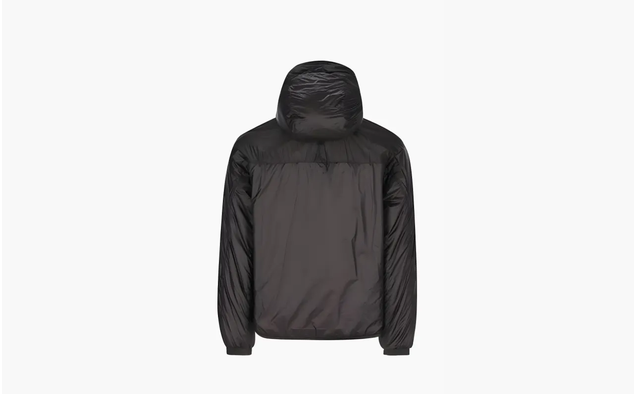 Куртка привлекает внимание лаконичным силуэтом с равномерной стёжкой «в ромб» и минималистичным кроем. Чёрный матовый материал подчёркивает универсальность, а съёмный капюшон с регулируемыми кулисками и высокий воротник обеспечивают защиту от ветра. Детали вроде эластичных манжетов, скрытых карманов и фурнитуры из матового металла усиливают утилитарность.