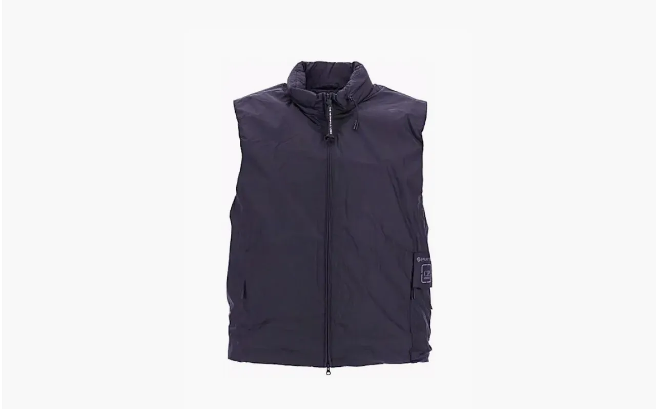 Жилет C.P. Company — это синяя мужская модель без рукавов, сочетающая технологичные материалы и функциональный дизайн. Вещь отражает наследие бренда в создании практичной экипировки для городских условий.