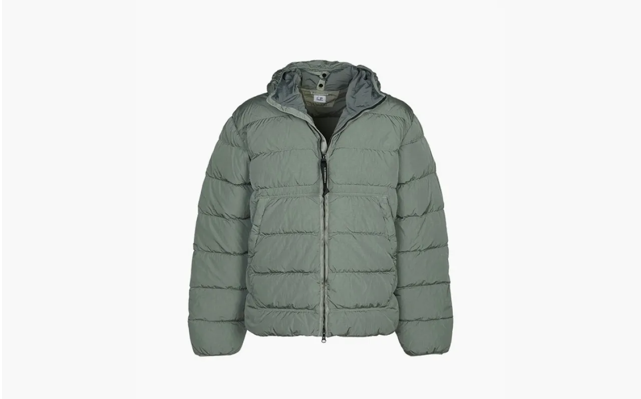 Куртка C.P. Company — это серая стёганая модель с капюшоном, сочетающая технологичные материалы и функциональный дизайн. Вещь отражает наследие бренда в создании экипировки для городских условий.