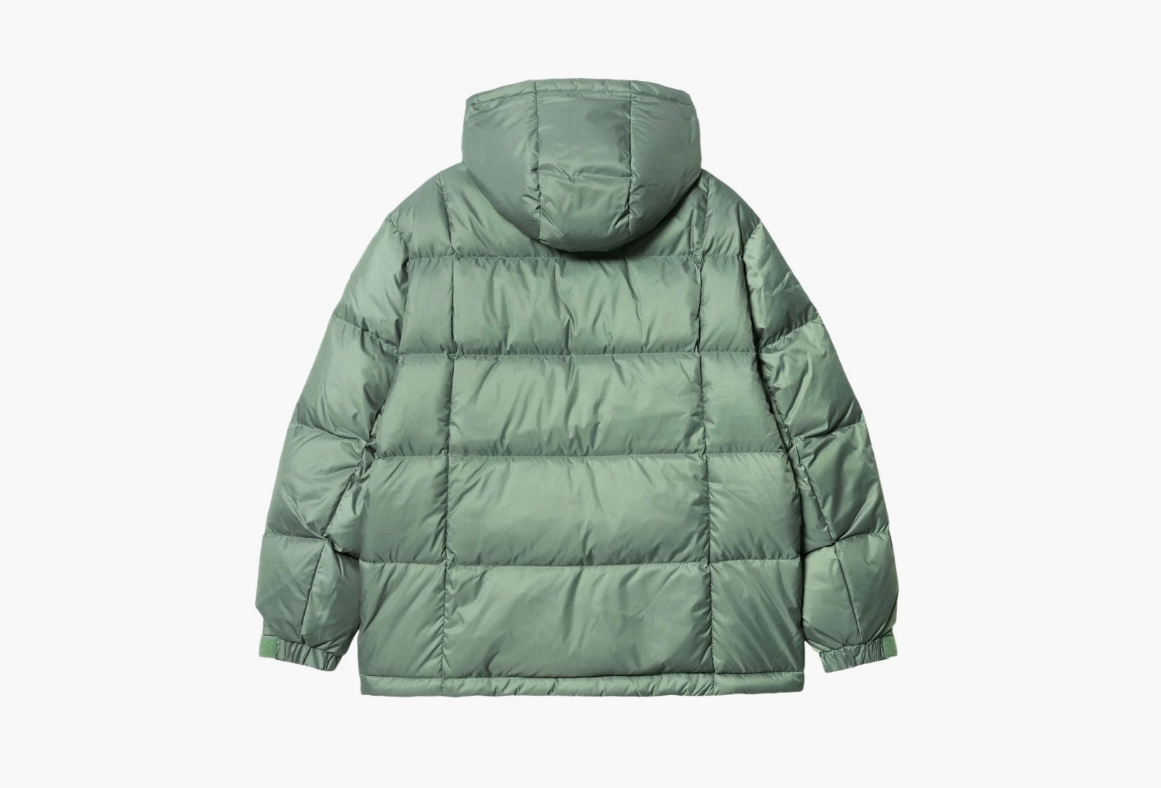 Carhartt WIP Aspen Puffer Jacket в насыщенном зелёном цвете — это современная интерпретация классической пуховой куртки, которая отлично впишется как в городской гардероб, так и в активный отдых.