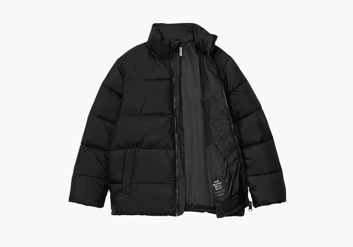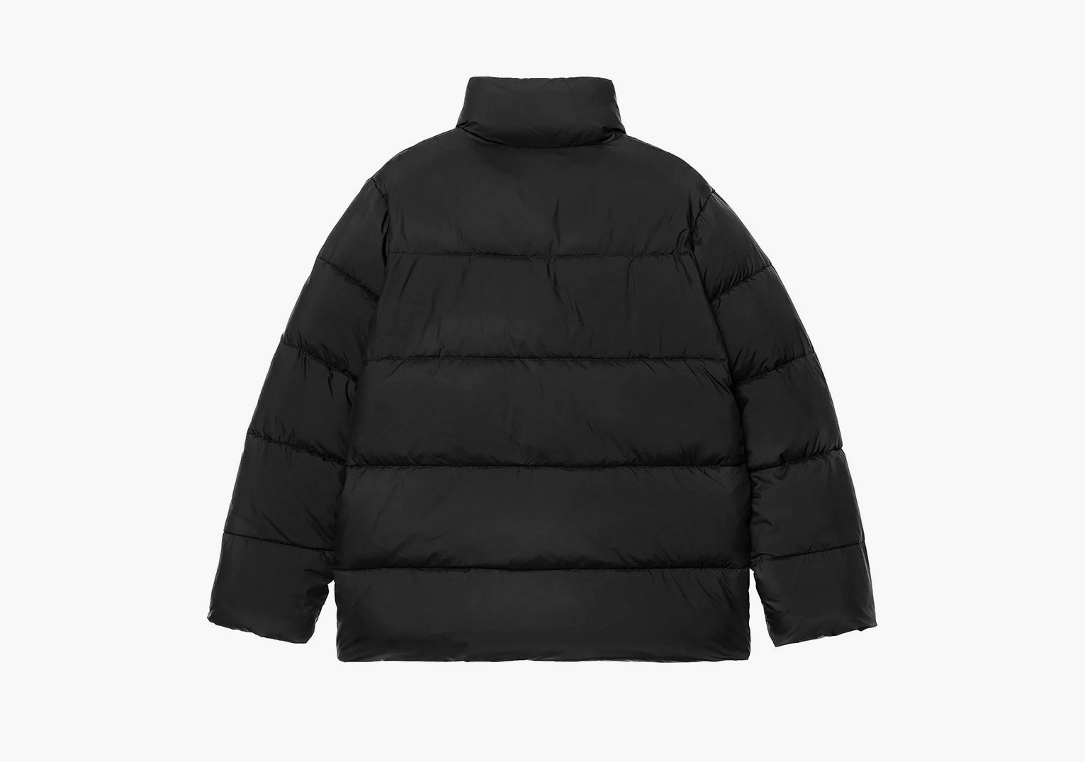 Carhartt WIP Springfield Puffer Jacket в стильном сочетании чёрного с серо-дымчатым оттенком — это современная интерпретация классической пуховой куртки. Модель создана для тех, кто ценит комфорт и функциональность в городской одежде.