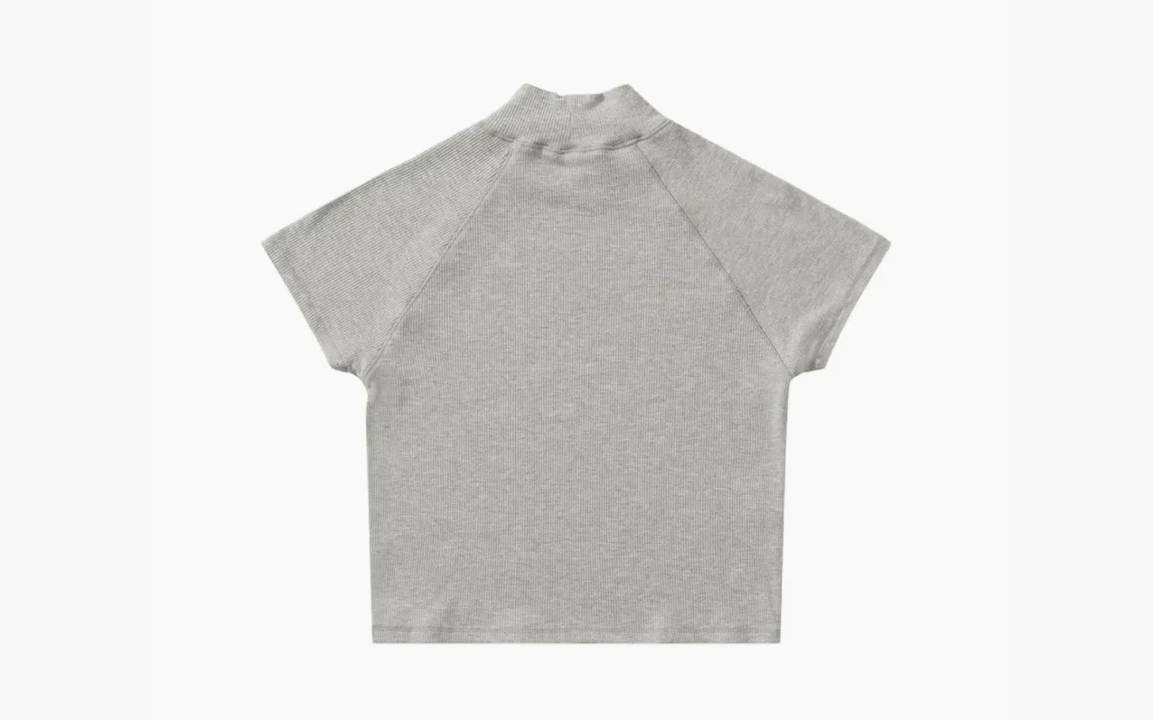 Футболка Chrome Hearts — серая, с коротким рукавом и воротником-стойкой. Дизайн сочетает минималистичный крой и графичный принт, создавая сдержанный, но выразительный образ.