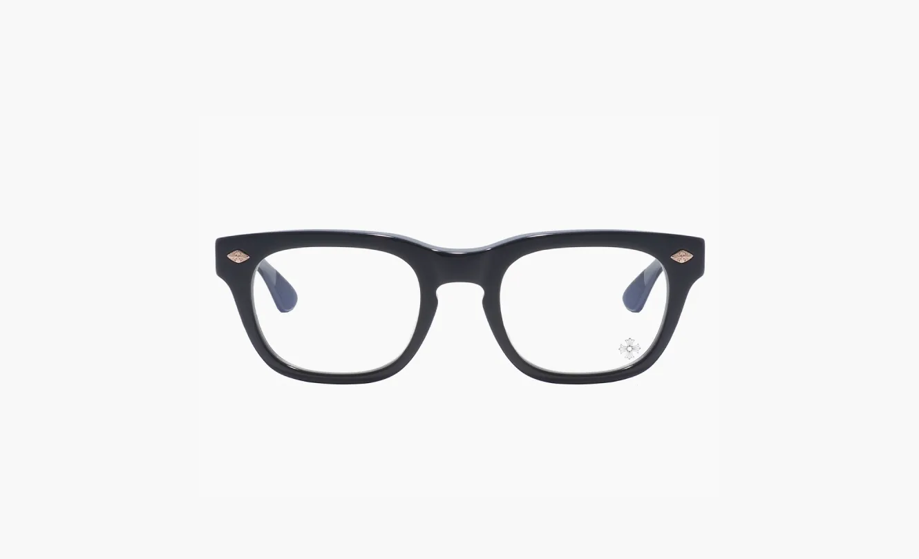 Очки Chrome Hearts — модель Baggins в черном цвете. Массивная оправа из ацетата с округлой формой и лаконичным дизайном, характерным для винтажных коллекций бренда.