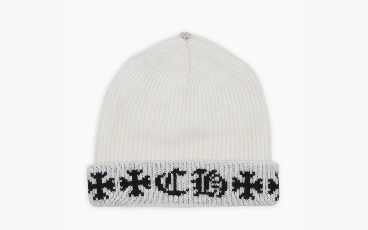 Шапка Chrome Hearts — белая, из кашемировой пряжи, с вышитой черной надписью «Big Daddy». Эластичная и мягкая, приятно сидит на голове, не сползая и не сдавливая.