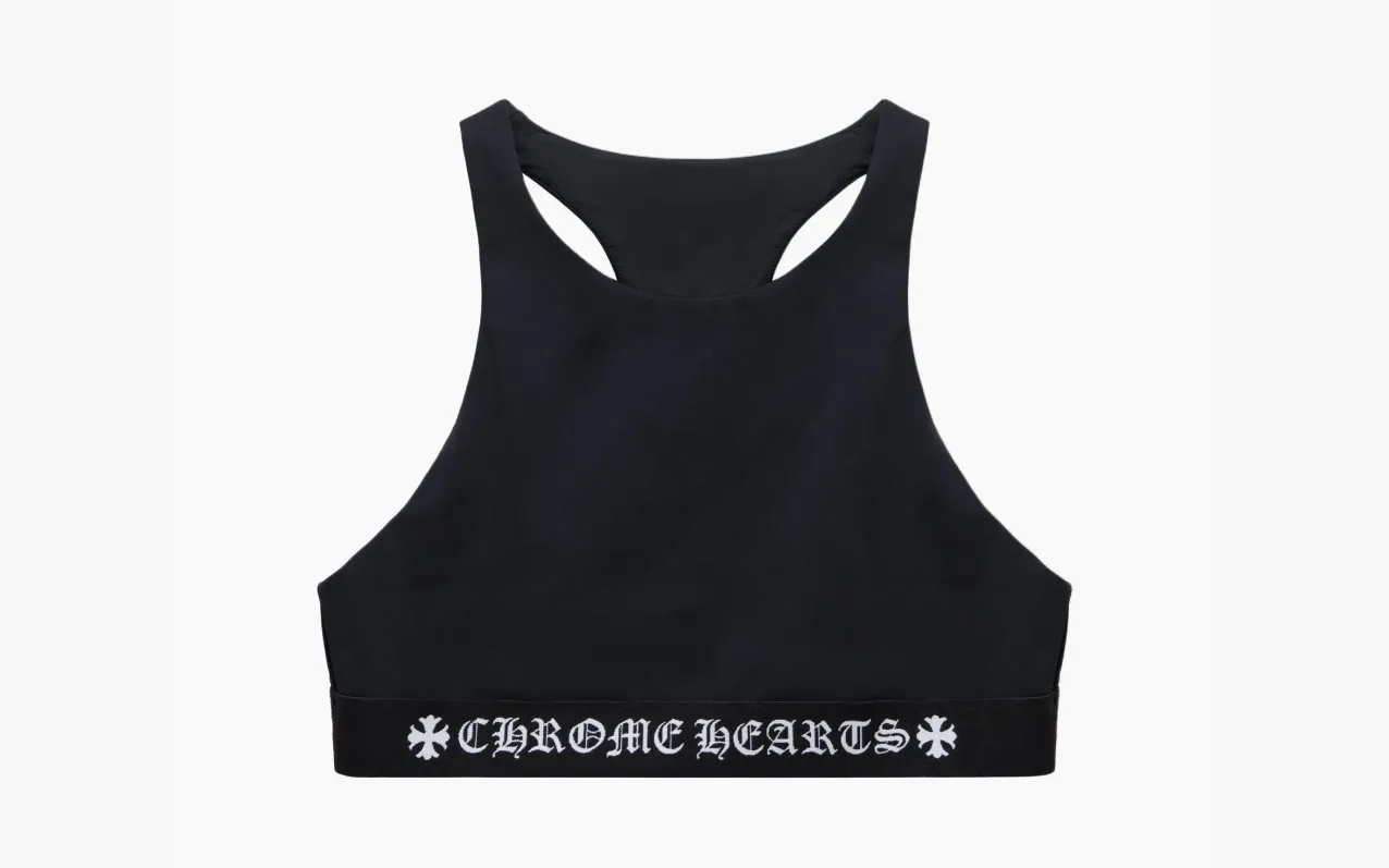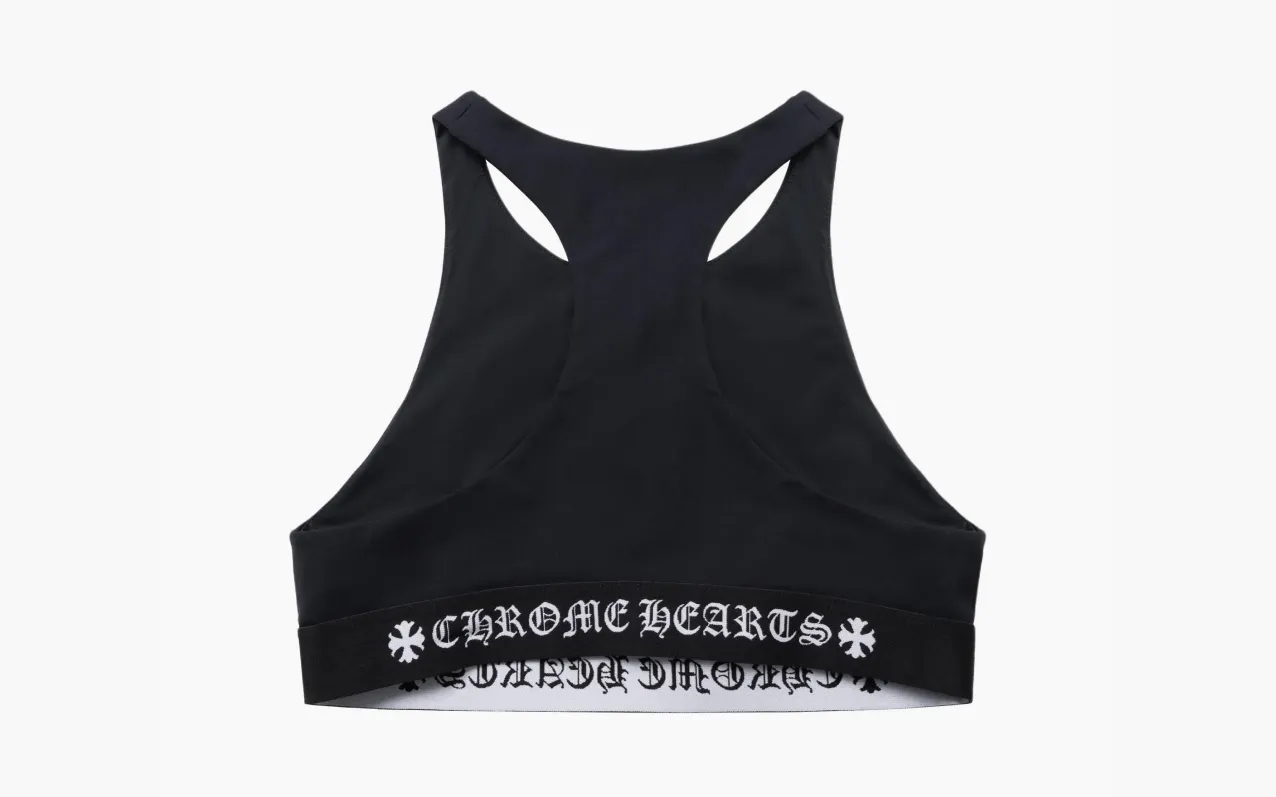 Спортивный топ Chrome Hearts — черный, с вышитой эластичной лентой. Минималистичный дизайн, сочетающий функциональность и фирменную эстетику бренда.