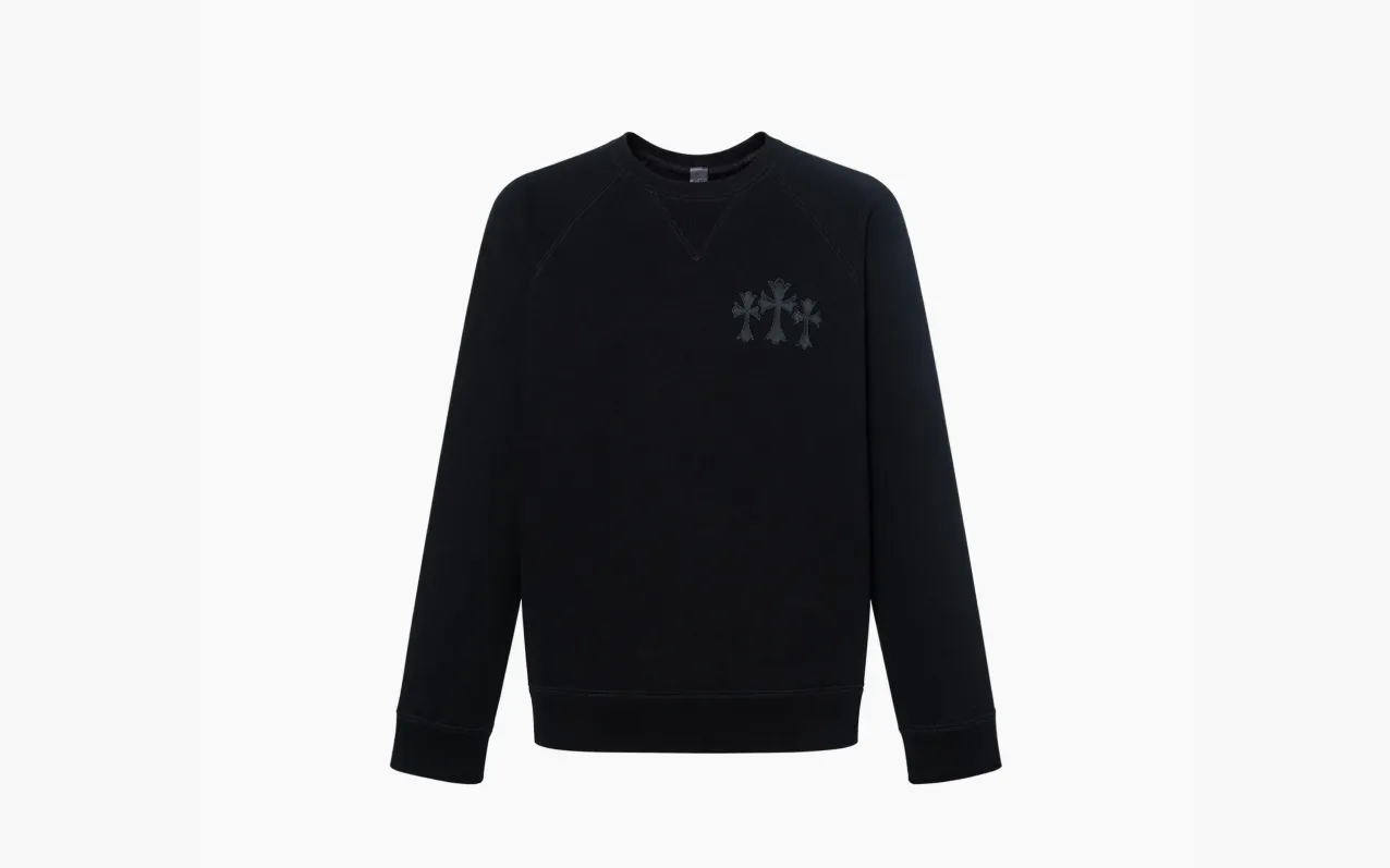 Свитшот Chrome Hearts — черный, с круглой горловиной и вышитым логотипом на груди. Минималистичный дизайн, в котором каждая деталь подчеркивает качество и принадлежность к бренду.