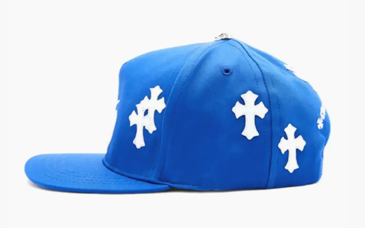 Кепка Chrome Hearts — синяя бейсболка с контрастной синей же нашивкой в виде креста. Дизайн основан на игре оттенков и фактур: плотный твил передней части сочетается с текстурой вышитой аппликации.