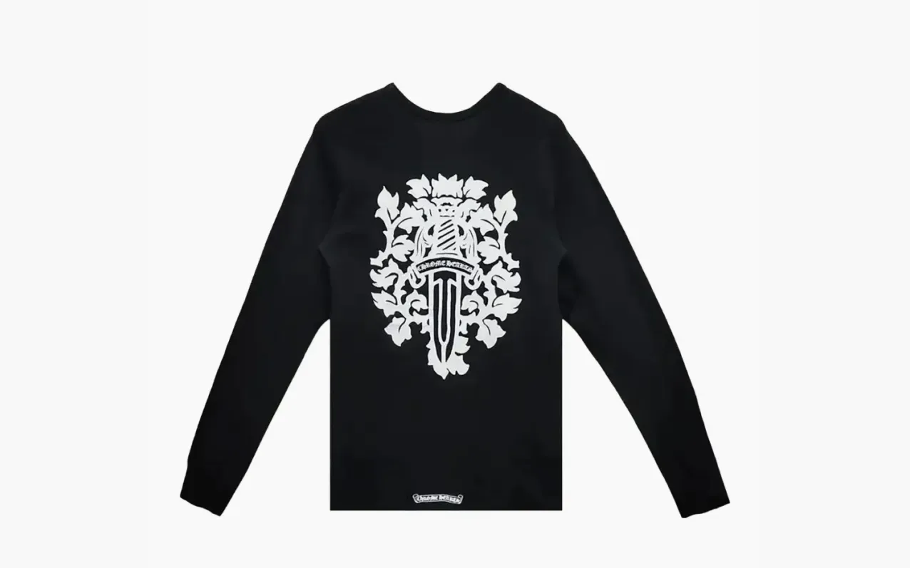 Лонгслив Chrome Hearts — черный, с длинным рукавом и графичным принтом кинжала на груди. Лаконичный, но выразительный дизайн, который сложно не заметить.
