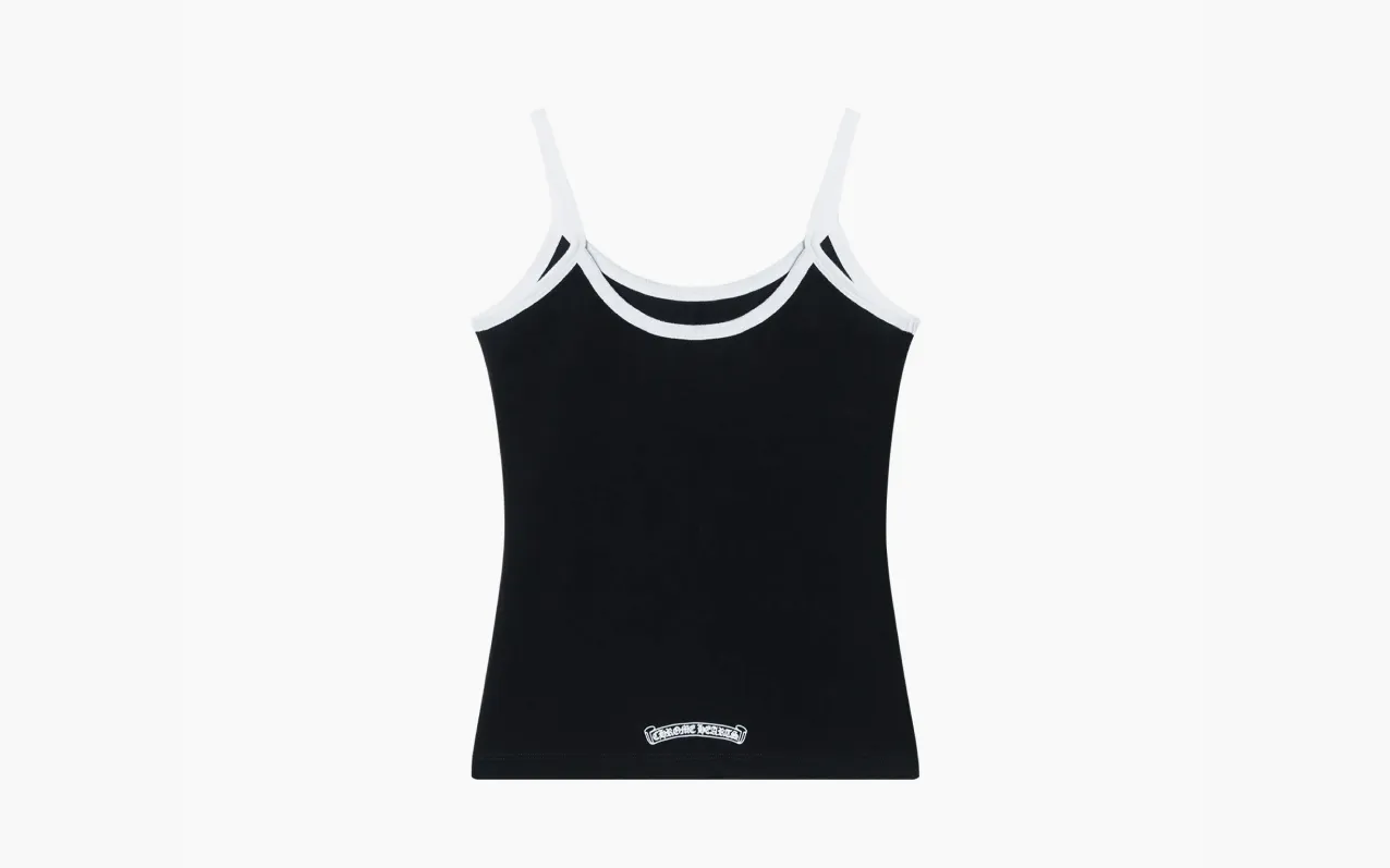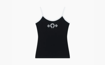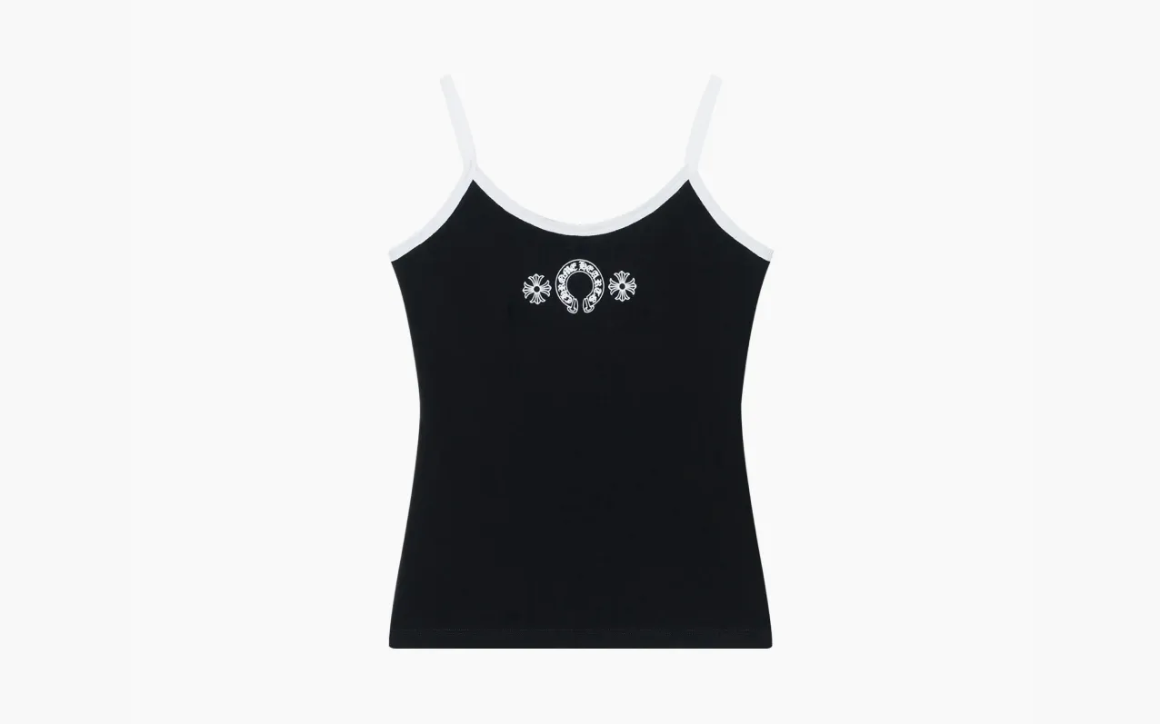 Топ Chrome Hearts — черный, с контрастной белой подковой на груди. Минималистичный дизайн, где лаконичность кроя сочетается с узнаваемой символикой бренда.