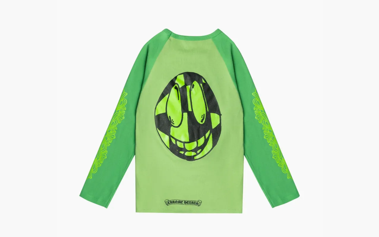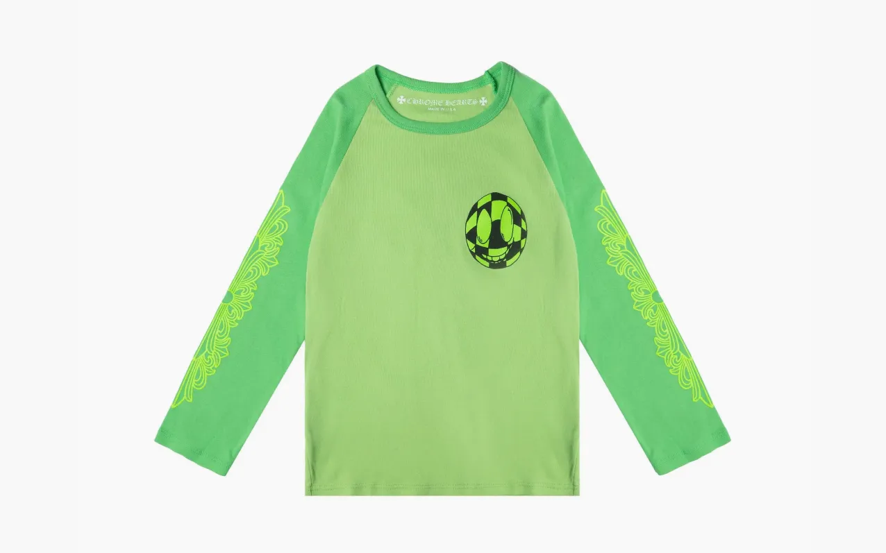 Лонгслив Chrome Hearts — зеленый, с длинным рукавом и вышитым логотипом на груди. Насыщенный цвет в сочетании с минималистичным дизайном создает сдержанный, но выразительный образ.