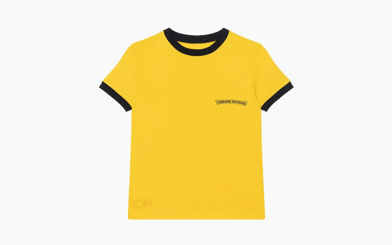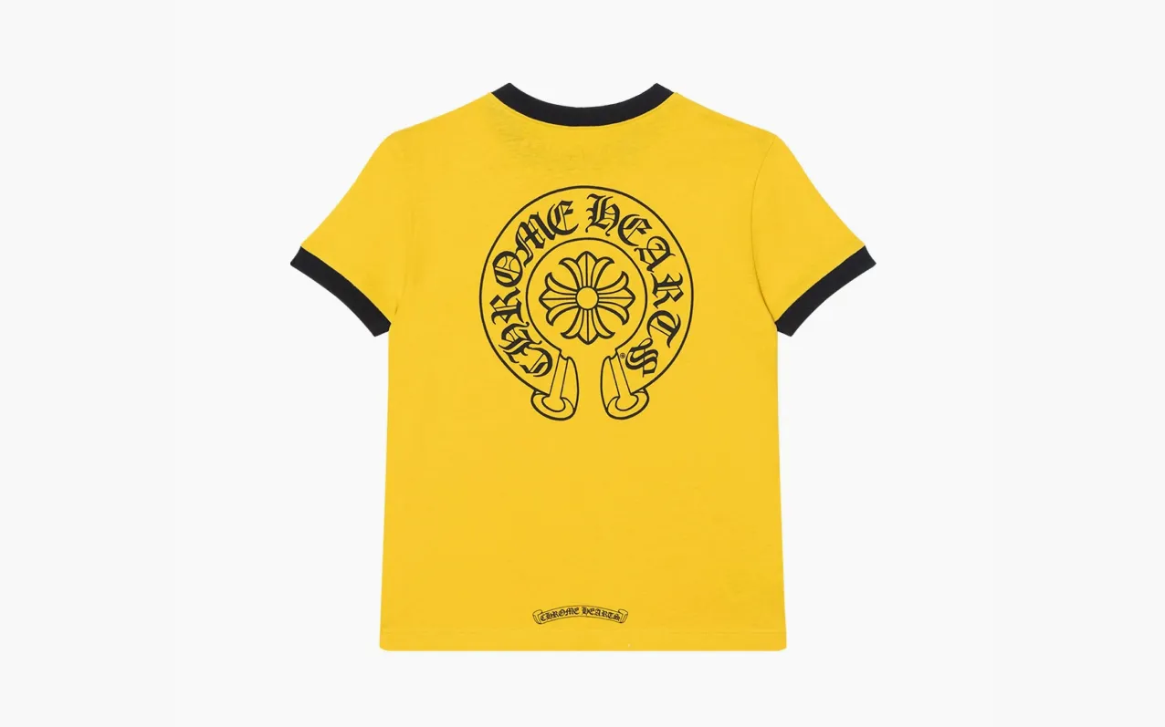Футболка Chrome Hearts — желтая, с принтом в виде подковы. Яркий цвет и винтажная тематика создают жизнерадостный, запоминающийся образ.