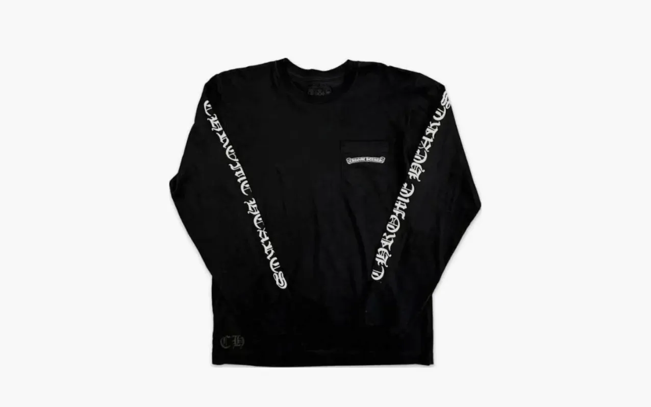Лонгслив Chrome Hearts — черный, с длинным рукавом и вышитым ажурным логотипом на груди. Минималистичный дизайн, где каждая деталь работает на общее впечатление.