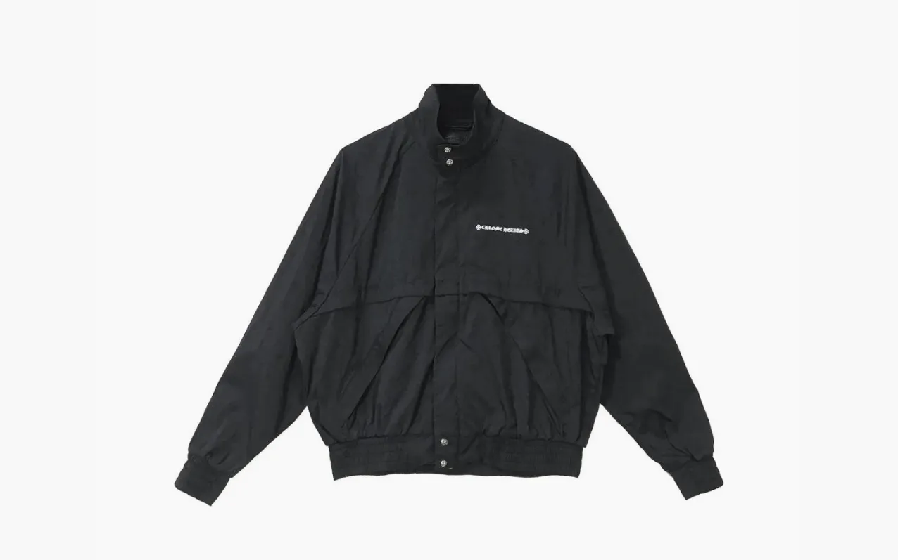 Куртка Chrome Hearts — черная легкая ветровка с принтом в виде ажурного свитка и креста. Функциональный предмет для прохладной погоды, сохраняющий эстетику бренда.