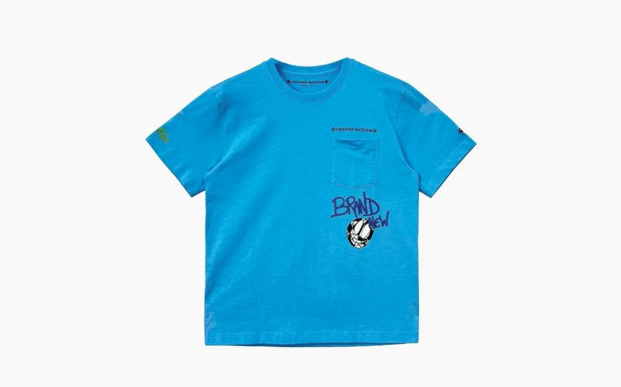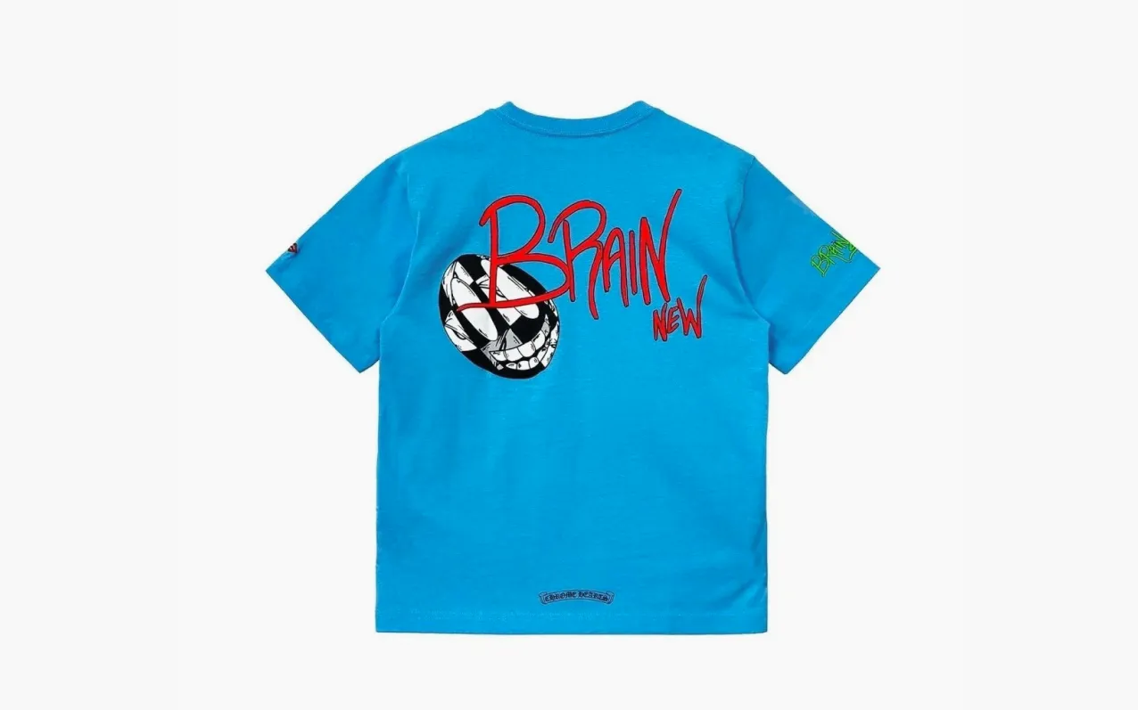 Футболка Chrome Hearts в коллаборации с Matty Boy — насыщенного синего цвета с графичным принтом «Brain» в стиле комиксов. Дизайн 2024 года сразу обращает на себя внимание смелым и современным подходом.