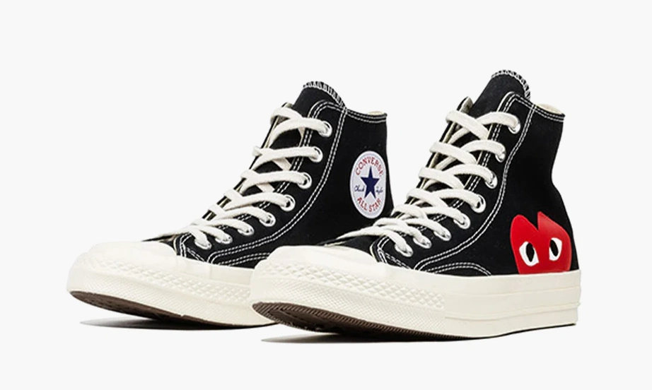 Это кроссовки - Comme des Garcons Play x Converse Chuck 70 High в классическом черном цвете с яркими красными акцентами. Модель сочетает узнаваемый дизайн Converse с уникальными деталями от дизайнера Comme des Garcons, создавая обувь, которая выглядит одновременно стильно и сдержанно. Код этого тандема — прочная ткань канвас высокого качества, усиленная резиновая подошва с классическим переплетением, которая обеспечивает отличную износостойкость и комфорт. Высокий крой надежно фиксирует щиколотку, а внутренняя подкладка из мягкого материала делает каждую прогулку приятной. В дизайне использованы детали в фирменных цветах бренда, что выделяет их среди стандартных моделей Chuck 70. Эта версия — результат сотрудничества двух культовых брендов, которые объединяют исторические корни и современный взгляд на уличную моду. Они отлично подойдут для тех, кто ищет обувь, способную сочетать в себе лаконичность и эксклюзивность, а также подчеркнуть чувство стиля. Высокое качество материалов и аккуратная сборка делают их инвестицией в длительный срок эксплуатации, при этом каждый шаг — это шанс показать, что у вас есть уникальный вкус.