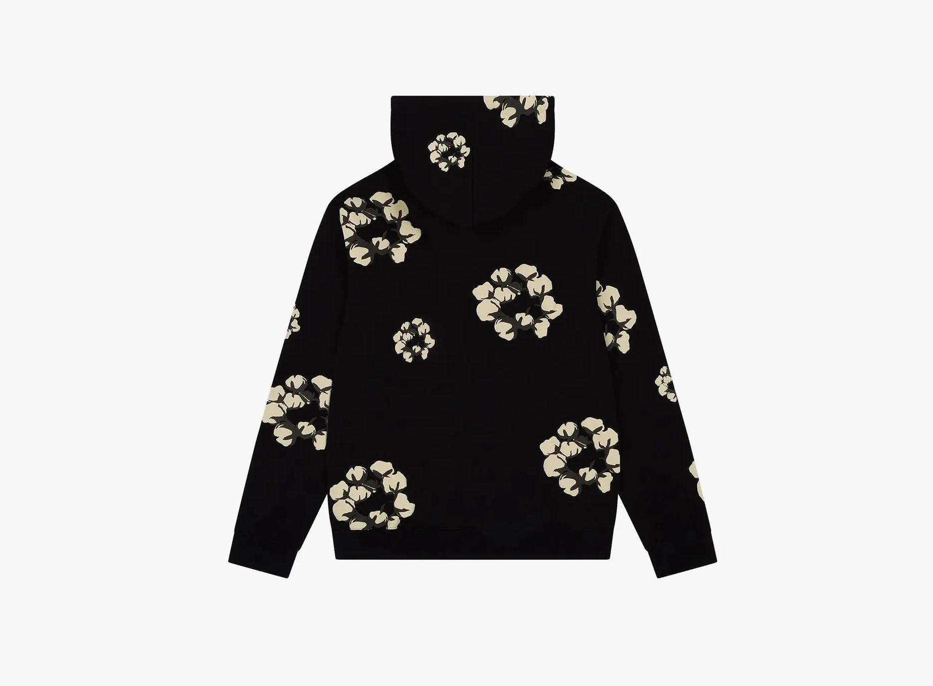 Denim Tears x Cactus Plant Flea Market Cactus Tears Wreath Hoodie в классическом чёрном цвете — это результат коллаборации двух культовых брендов уличной моды. Худи сразу привлекает внимание необычным дизайном: на груди красуется вышитый венок из кактусов, который стал визитной карточкой этой совместной коллекции.