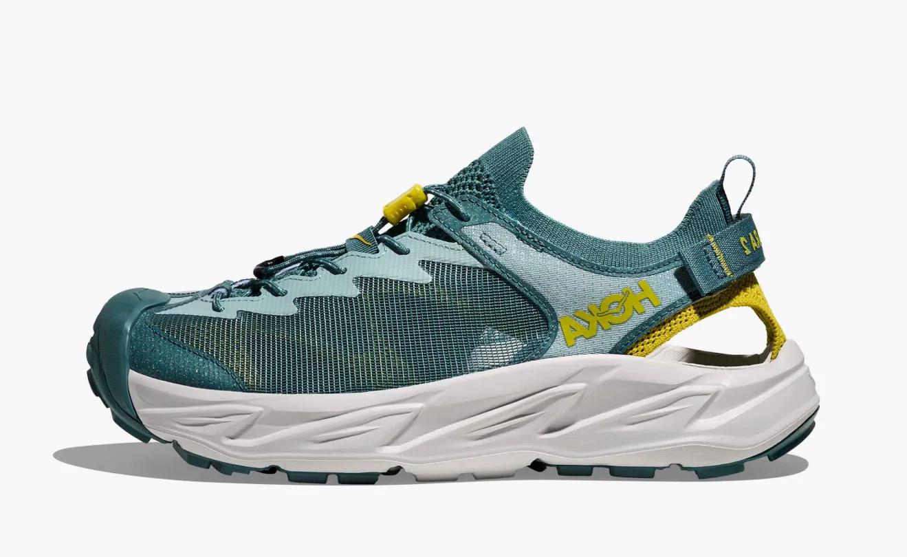 Кроссовки-сандалии Hoka Hopara 2 в расцветке Druzy/Mountain Fog — это гибридная модель, сочетающая надежность трейловой обуви и свободу сандалий. Расцветка объединяет мерцающий оттенок друзы с холодным серо-голубым тоном горного тумана, создавая сложную и современную палитру.