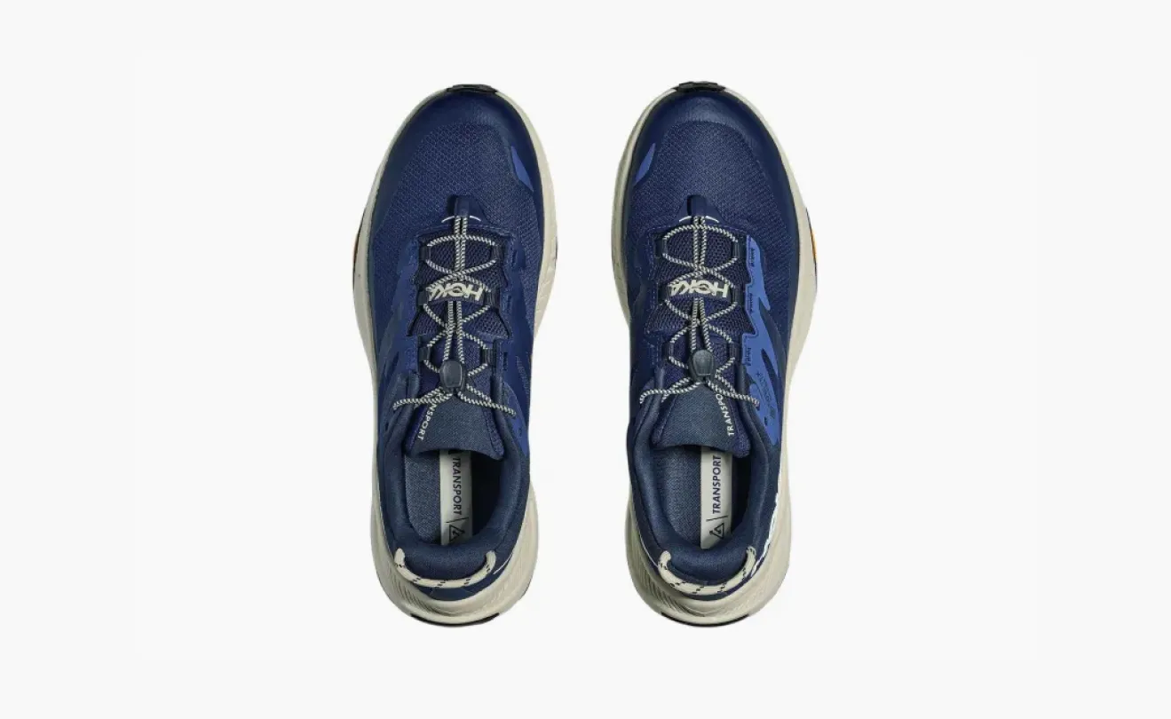 Кроссовки Hoka Transport в расцветке Midnight Blue/Truffle Salt — это глубокая ночная синева в сочетании с мягким бежево-серым акцентом. Насыщенный темно-синий, напоминающий ночное небо, служит основой, которую освещают дымчатые переливы «соленой трюфельной» пыли.