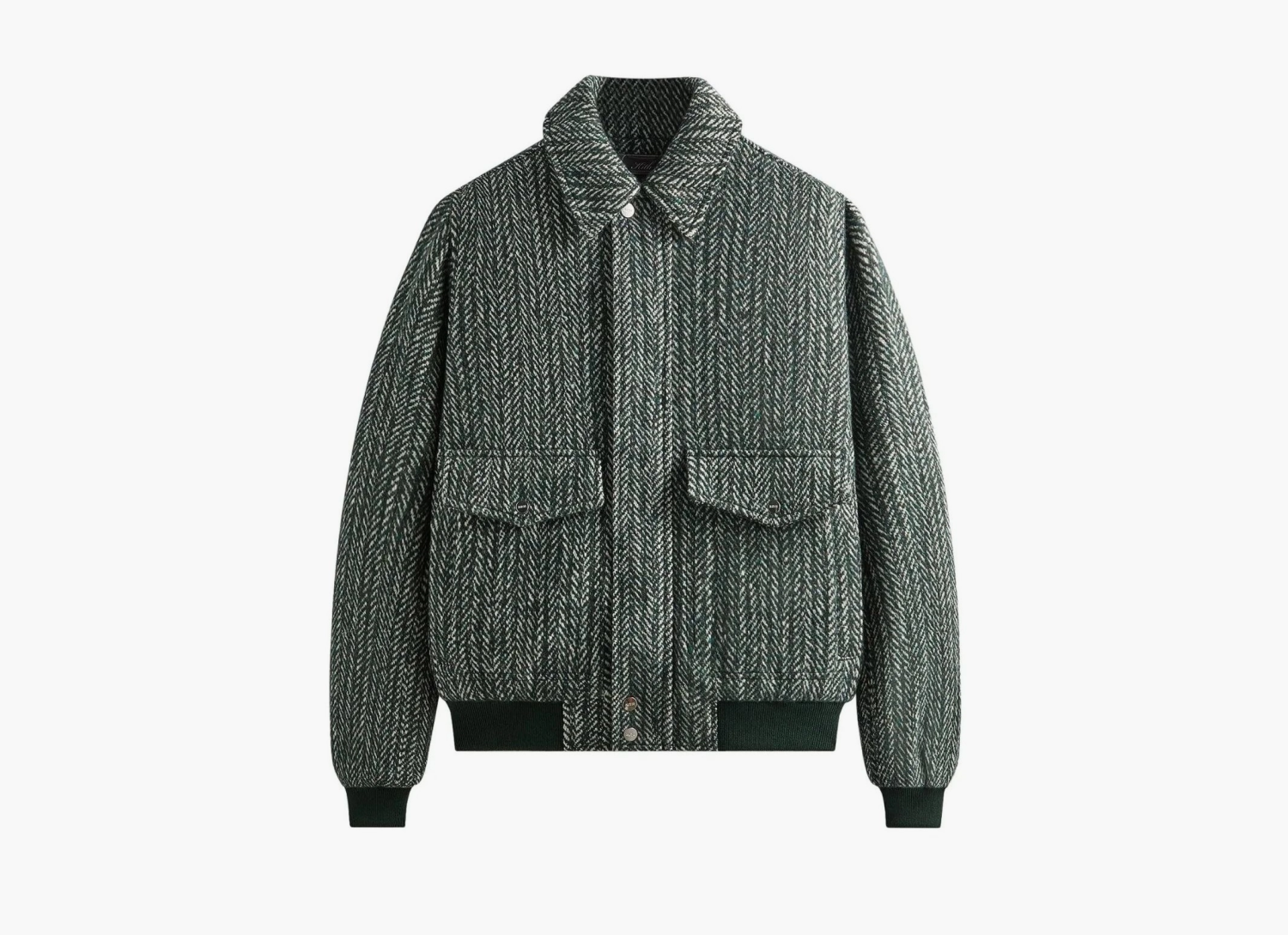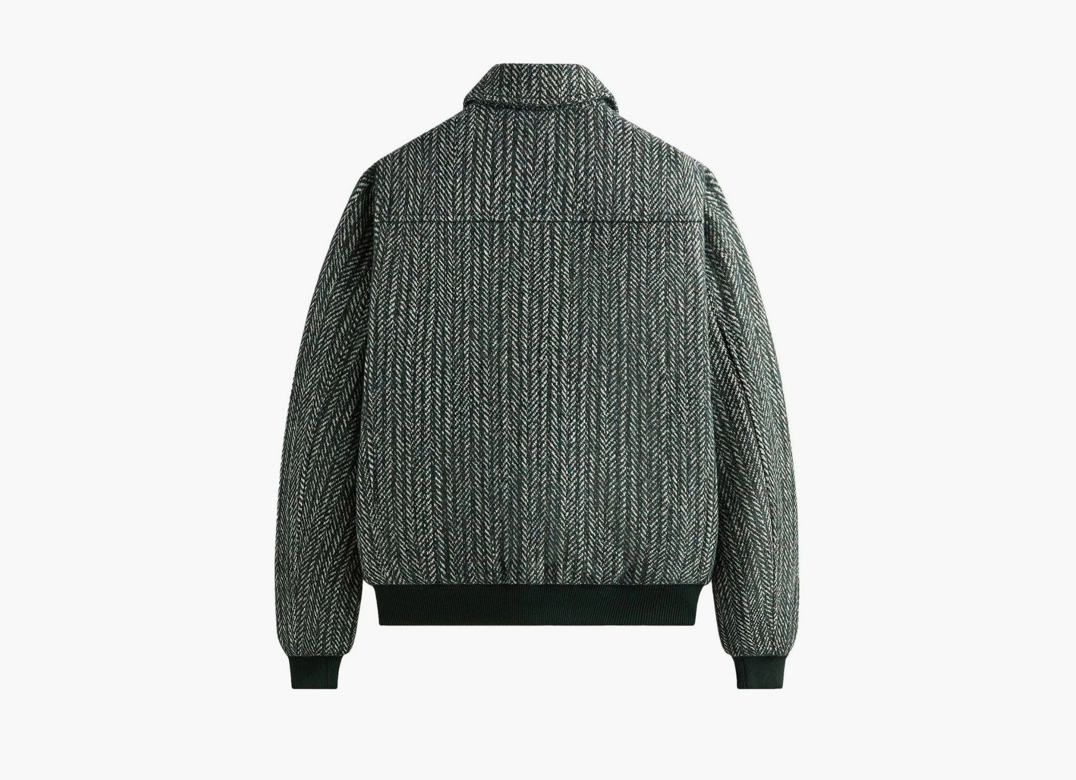Kith Herringbone Hawthorne Flight Jacket Stadium - это куртка-бомбер в насыщенном зелёном цвете — классический крой, выполненный из прочного твида с эффектным рисунком «елочка» (herringbone). Эта модель отлично сочетает в себе утилитарный стиль и современный дизайн, добавляя в образ немного времени прошлого с актуальными деталями. Основной материал — именно твидовая ткань, которая хорошо держит тепло и отличается высокой износостойкостью. Благодаря использованию технологий обработки, материал сохраняет свой внешний вид даже после долгого использования. Куртка оснащена прочными застежками и эластичными манжетами, что обеспечивает комфорт и плотное прилегание. Внутри — мягкий подклад, делающий ношение приятным, особенно в прохладную погоду. Дизайн продуман до мелочей: классический крой с дополняющими деталями — кожаными вставками, аккуратным швом и без лишних украшений. Всё в этой модели говорит о её практичности и качестве, а также о том, что это вещь, созданная для тех, кто ценит долговечность и стиль.