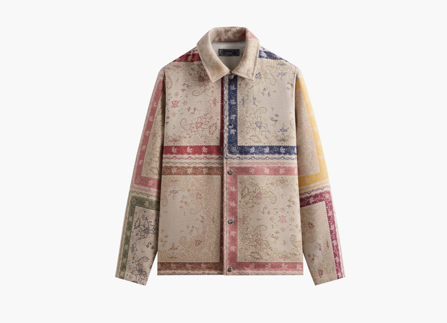 Kith Paisley Tapestry Coaches Jacket Waffle в бежевом цвете — это стильная верхняя одежда, которая сочетает в себе классический крой с актуальным дизайном. Главная особенность — насыщенный паттерн пайсли на ткани, при этом материал выполнен из прочного, износостойкого текстиля, что особенно важно для ежедневного использования. Внутренний слой из вафельного трикотажа не только добавляет текстурный интерес, но и отлично сохраняет тепло, делая такую куртку подходящей для прохладной погоды. Дизайн модели с классической костюмной посадкой обеспечивает комфорт при носке и лёгкое движение. Уникальный узор, вдохновленный историей тканей и орнаментов, отлично сочетается с практичностью. Благодаря использованным современным технологиям обработки, изделие хорошо держит форму и устойчиво к изношенности, а также легко чистится. Эта модель — удачное сочетание уличного стиля и функциональности, которая прослужит долго и не выйдет из моды. Исключительная особенность этой куртки — сочетание текстурных деталей и современных материалов, что делает её заметной и при этом практичной. В ней хорошо сочетается стиль ретро и актуальный тренд на насыщенные узорные ткани, что делает её достойным выбором для тех, кто ищет что-то особенное и долговечное.