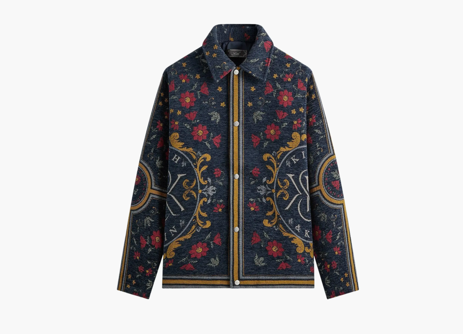 Kith Scarf Tapestry Coaches Jacket Nocturnal в насыщенном синем цвете — это сочетание классического кроя и живого, насыщенного дизайна. Основная особенность — ткань с декоративным ткацким узором, напоминающим традиционные гобеленовые мотивы, которые придают изделию глубину и характер. Куртка выполнена из прочного, водоотталкивающего материала с технологией, защищающей от непогоды, что делает её отличным выбором для переменчивых условий. На внутренней стороне находится мягкая флисовая подкладка, которая сохраняет тепло и обеспечивает комфорт при носке в прохладную погоду. Универсальный дизайн с классической посадкой и удобными манжетами позволяет легко сочетать куртку с разными образами. Технологичные детали, такие как долговечные застёжки и усиленные швы, гарантируют долговечность, особенно при активном использовании. Эта куртка — это не просто элемент гардероба, а комбинация современного стиля и продуманной функциональности. Её уникальный тканевый рисунок и качественные материалы выделяют её среди аналогов, делая подходящим выбором для тех, кто ценит оригинальность и долговечность в городской одежде.