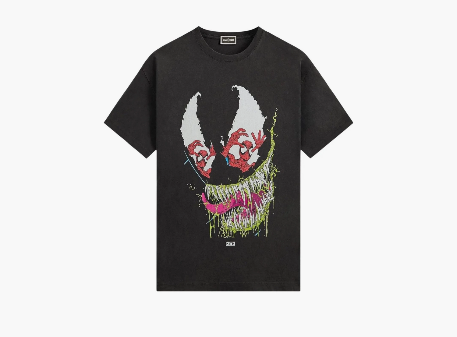 Kith x Marvel Venom Vintage Tee Black в чёрном цвете. Этот мерч сразу бросается в глаза благодаря крупному изображению Венома, выполненному в стиле винтажного принта. Данная классическая футболка с коротким рукавом и чуть усеченной линией плеч — это не просто вещь, а объединение уличного стиля с популярной культурой Marvel. Материал у этой футболки — мягкий хлопок высокого качества, который хорошо пропускает воздух и не раздражает кожу. Технологии производства здесь минималистичны, но продуманы: ткань не растягивается и не теряет формы после многократных стирок. Удобный крой без лишних деталей делает модель максимально практичной, а винтажный принт добавляет немного ностальгии по классике комиксов и фильмов Marvel. Особенность этого варианта — олицетворение классической эстетики с современным маркепгейном. Такой дизайн хорошо смотрится с джинсами или спортивными штанами и точно не останется незамеченным. Вещь создана, чтобы служить долго и оставаться актуальной — серьезный выбор для тех, кто ценит продуманный стиль и качественный продукт.