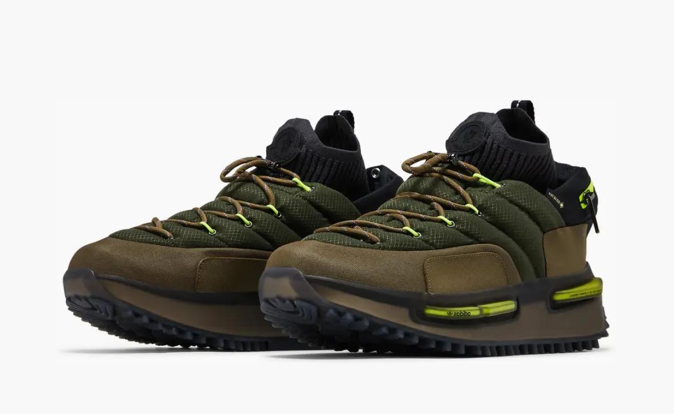Оливковые кроссовки Moncler x Adidas NMD S1 из специальной серии «The Art of Exploration». Эта коллаборация объединяет инновационную модель Adidas NMD S1 с люксовым дизайном Moncler, а также включает технологию Gore-Tex для полной водонепроницаемости и защиты от непогоды.