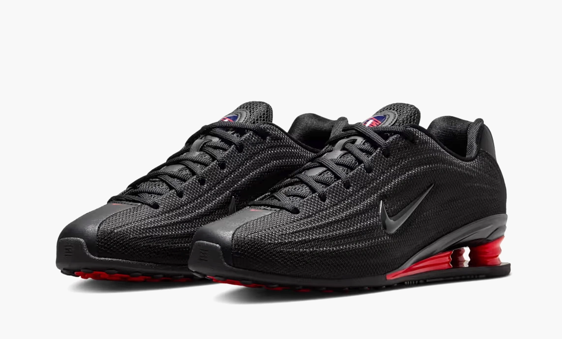 Nike Shox Z WMNS в чёрно‑красной гамме — это не просто кроссовки, а продуманный симбиоз ретро‑эстетики и современных технологий. Строгий чёрный верх с выразительными красными акцентами делает модель универсальной: она легко впишется и в спортивный, и в повседневный гардероб.