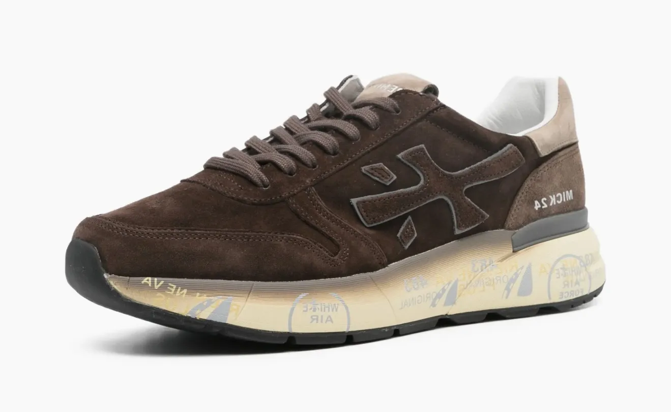 Коричневые кроссовки Premiata Mick с декоративными вставками — это модель, которая строится на сочетании разных материалов. Само название «with inserts» указывает на то, что в дизайне используются контрастные текстуры, например, гладкая кожа и замша или текстиль.