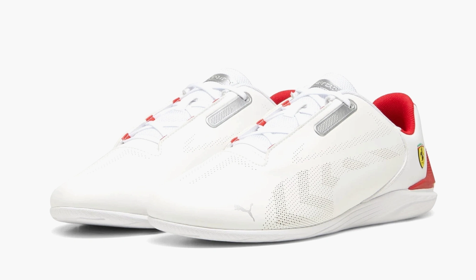 Puma Drift Cat Decima 2.0 x Scuderia Ferrari в бело-красном исполнении — это настоящая находка для поклонников скорости и стиля. Сочетание культового белого цвета с фирменным красным Rosso Corsa от Ferrari создает по-настоящему эффектный образ, который сложно не заметить.
