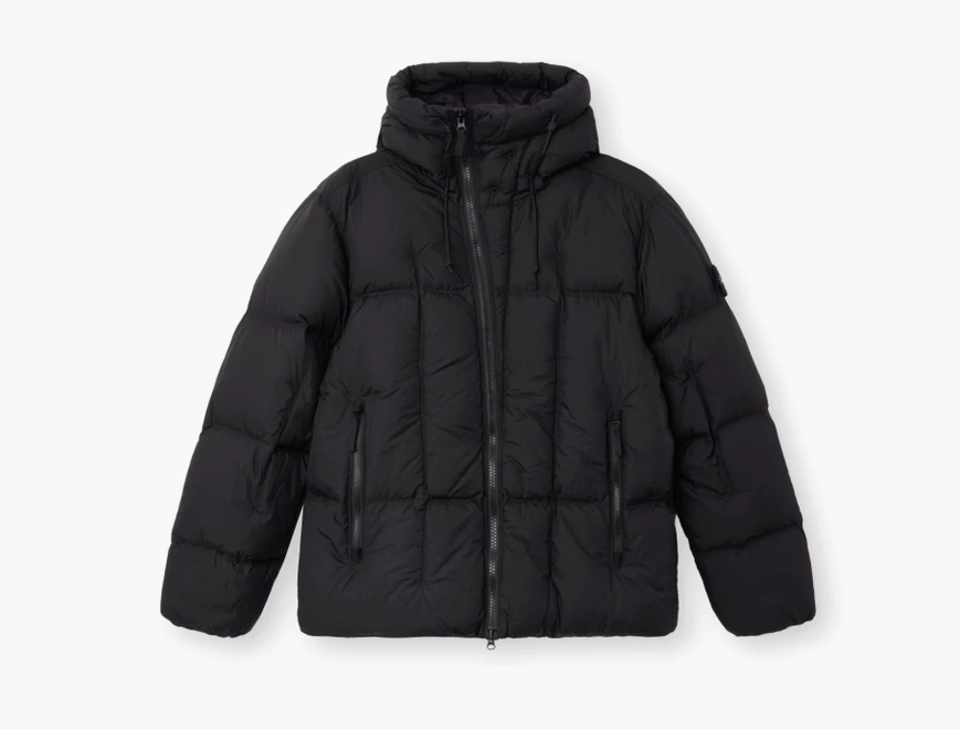 Stone Island Hooded Down Jacket в черном цвете — легкая пуховая модель с капюшоном, созданная для активных городских и outdoor условий. Ее основная особенность — сочетание минималистичного дизайна с использованием инновационных технологий, что делает вещь не только стильной, но и максимально практичной. Верхний слой выполнен из водоотталкивающей и воздухопроницаемой ткани, которая защищает от ветра и дождя, при этом позволяя внутренним парам свободно выходить. Основной утеплитель — высококачественный натуральный пух, обеспечивающий отличную теплоизоляцию без лишнего веса. Такой набор материалов гарантирует комфорт в прохладную погоду и легкость при переноске или хранении. Внутренний слой аккуратно выполнен из мягких и приятных тканей, что делает долгое ношение особенно комфортным. Технологии и материалы соответствуют стандартам бренда, который славится своими инновациями в области уличного и технического гардероба. Дизайн куртки строгий и лаконичный: классический крой, капюшон с регулируемыми элементами, плотные застежки и функциональные карманы позволяют использовать ее даже в сложных погодных условиях. Такой фасон подходит под разные стили — от повседневного городского до более активного образа жизни. Особая гордость модели — это сочетание легкости и долговечности, что делает ее практически универсальной в эксплуатации. В этом смысле Stone Island продолжает удерживать статус инновационного лидера, совмещая премиальные материалы с современной эстетикой. Уникальность этой модели в балансе между техническим прогрессом и эстетической минималистичностью — она способна служить долго, сохраняя отличное состояние и функциональность, даже при частых и интенсивных носках.