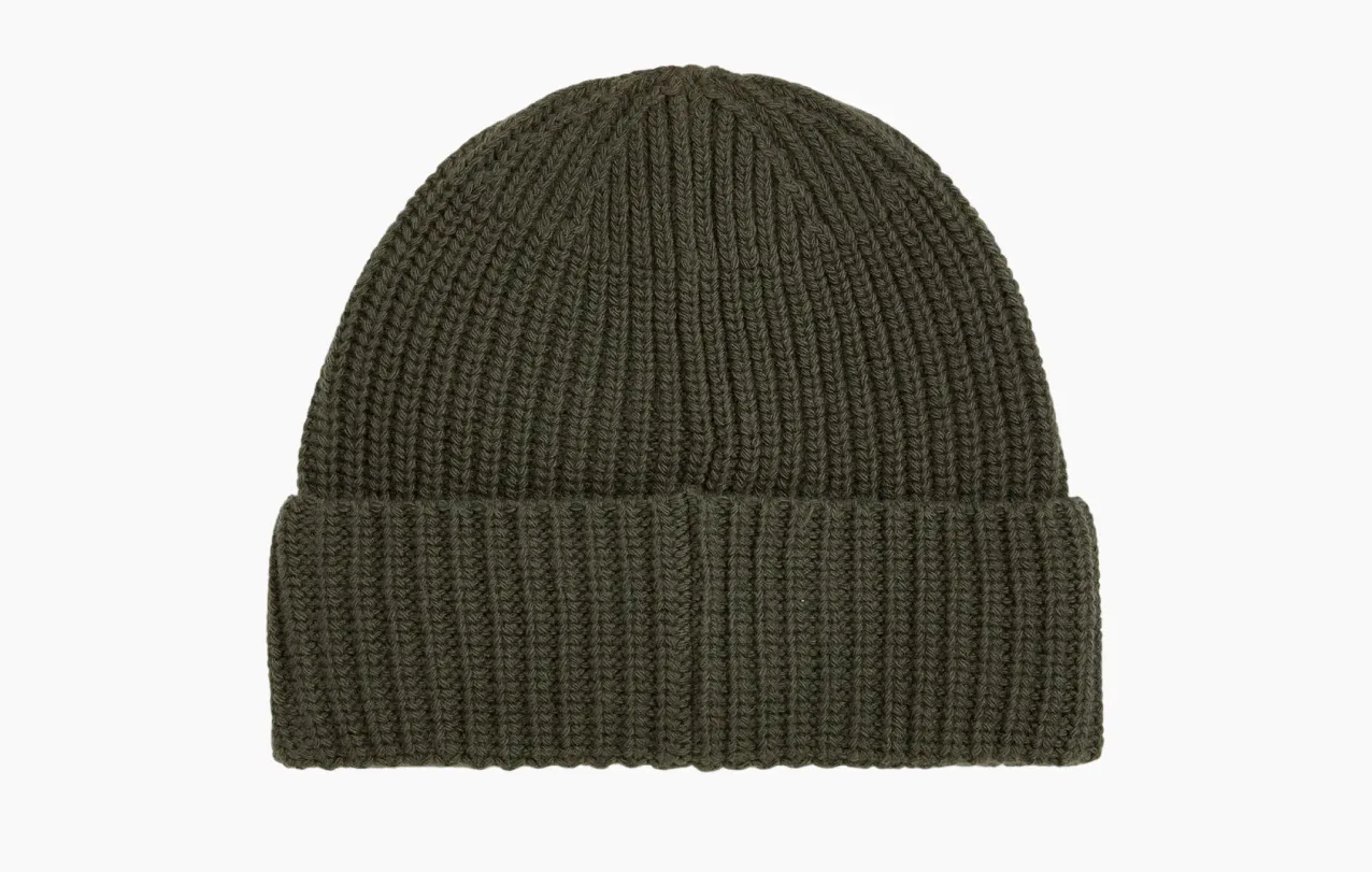 Классический ребристый узор придает шапке эластичность и аккуратный объем, а сдержанный дизайн завершает узнаваемая деталь бренда — накладной ремешок сзади.